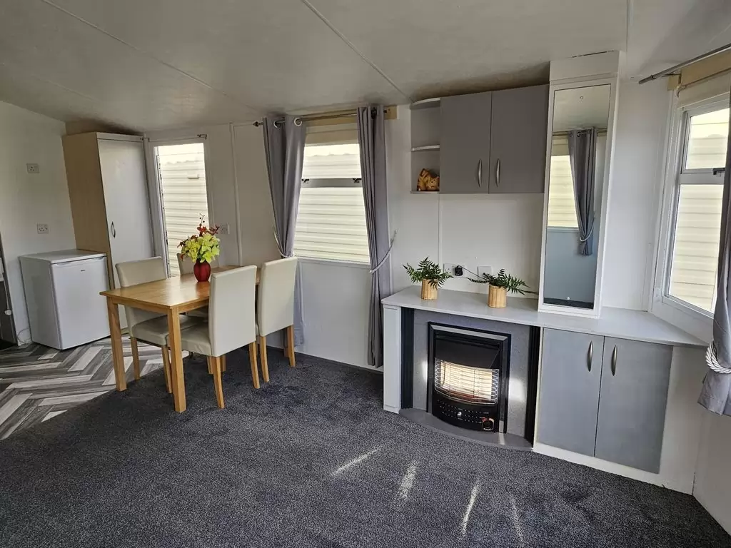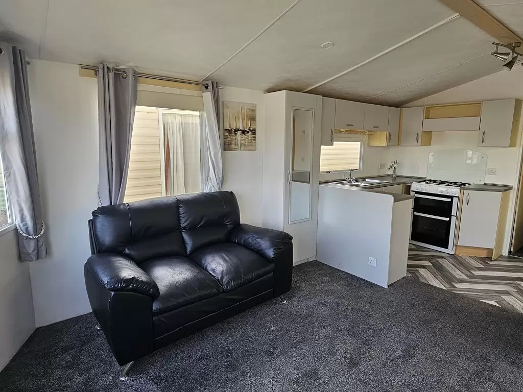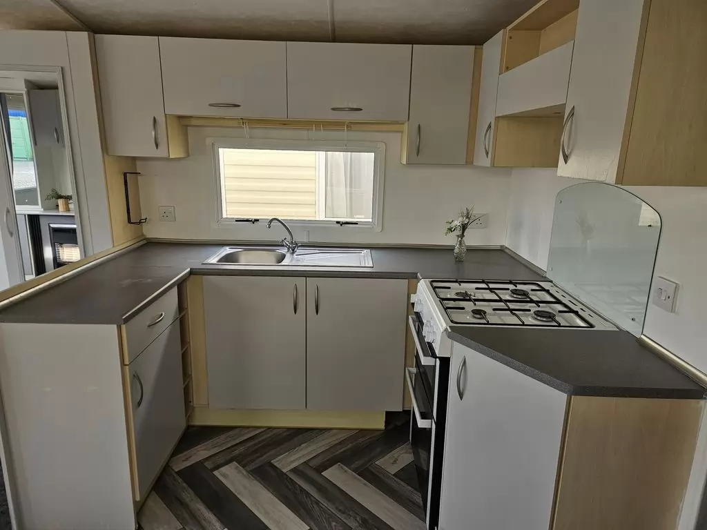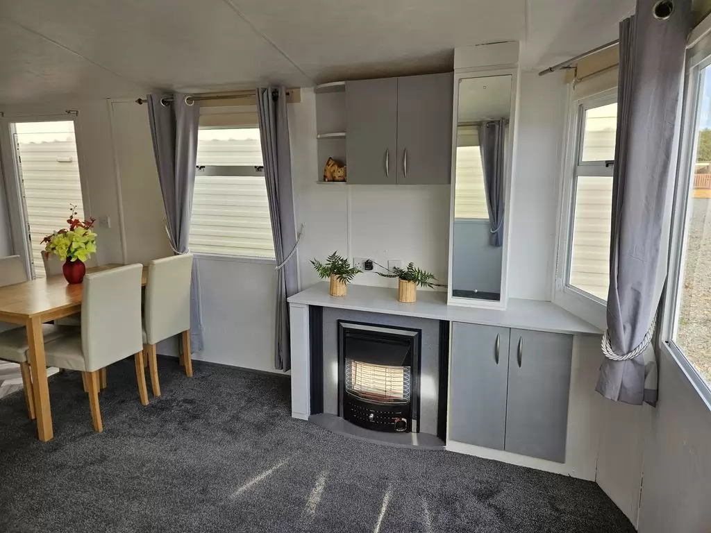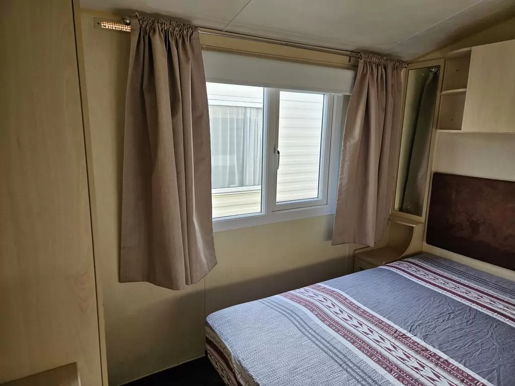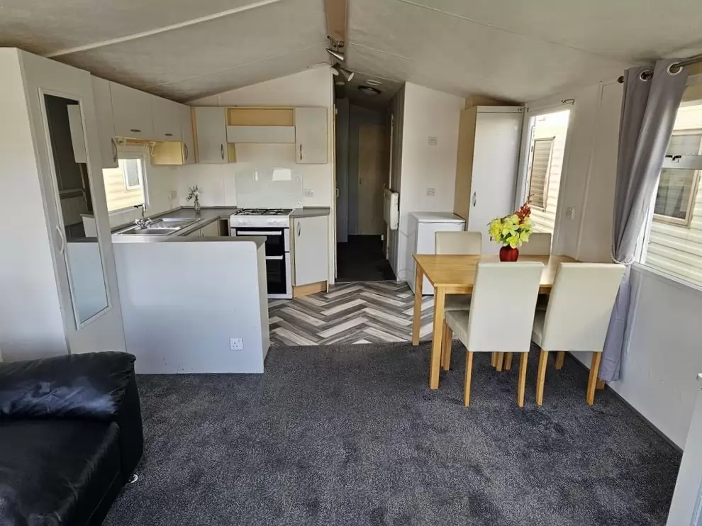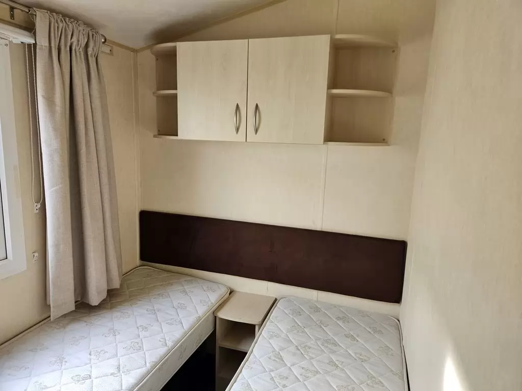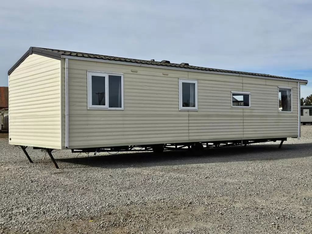 Extra široký, krásny, kompletne vybavený mobilheim 10,8 x 3,7m s jedným vchodom, SEDLOVOU STRECHOU S IMITÁCIOU STREŠNÝCH TAŠIEK, DVOJITÝMI (izolačnými) OKNAMI A DVERMI - dithermy. Priestranná obývacia izba, jedálenský kút, kuchyňa v tvare U vrátane spotrebičov, spálňa (dvojlôžko), izba (2 lôžka), izba (lôžko), kúpeľňa so sprchovacím kútom s pevnou zástenou a termostatickou batériou, wc s umývadlom zvlášť. Plynový krb + el. priamotopy, plynová karma na ohrev vody. Zvýšený strop v celom mobilheime !!