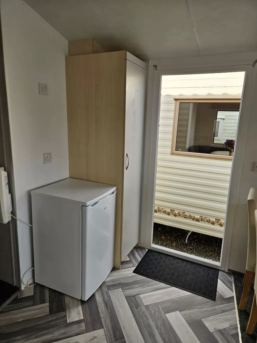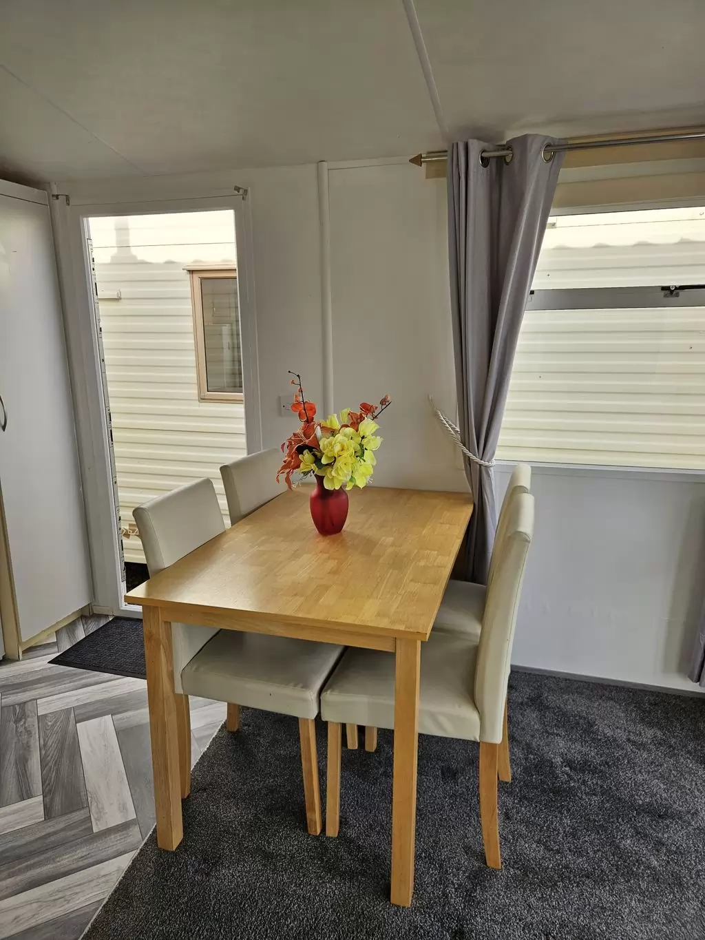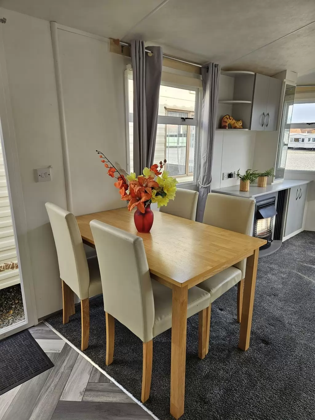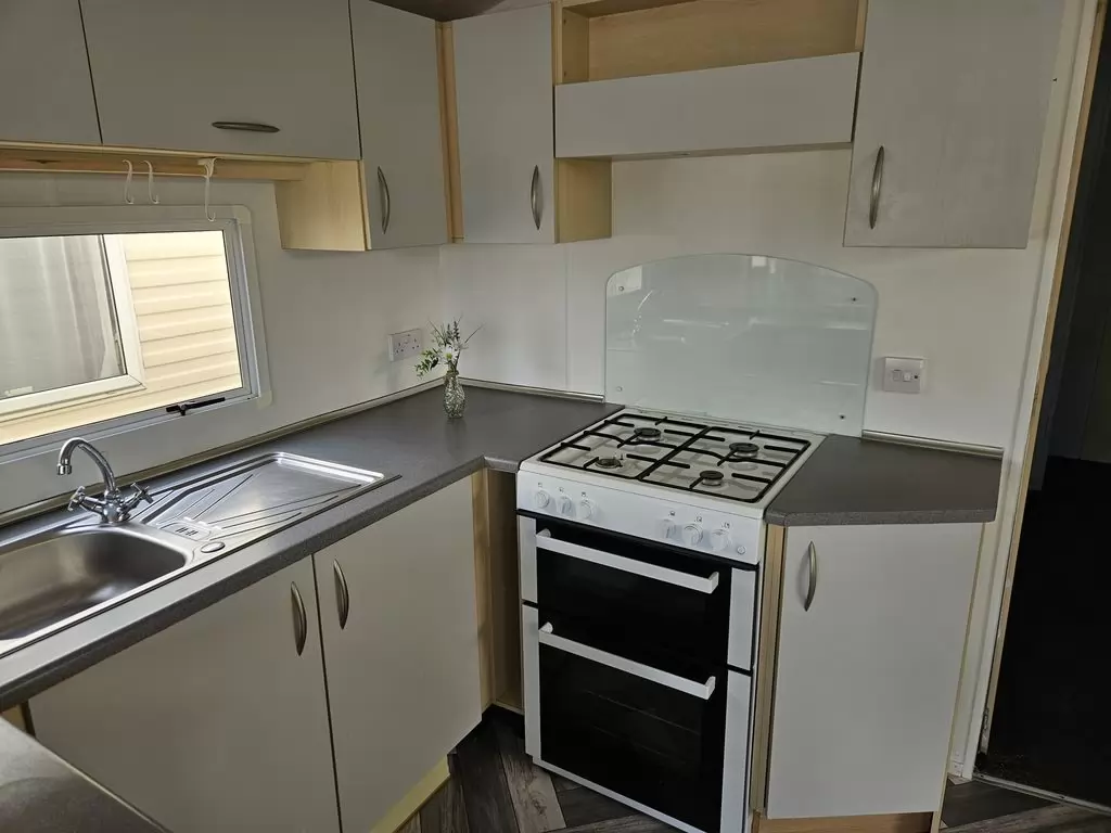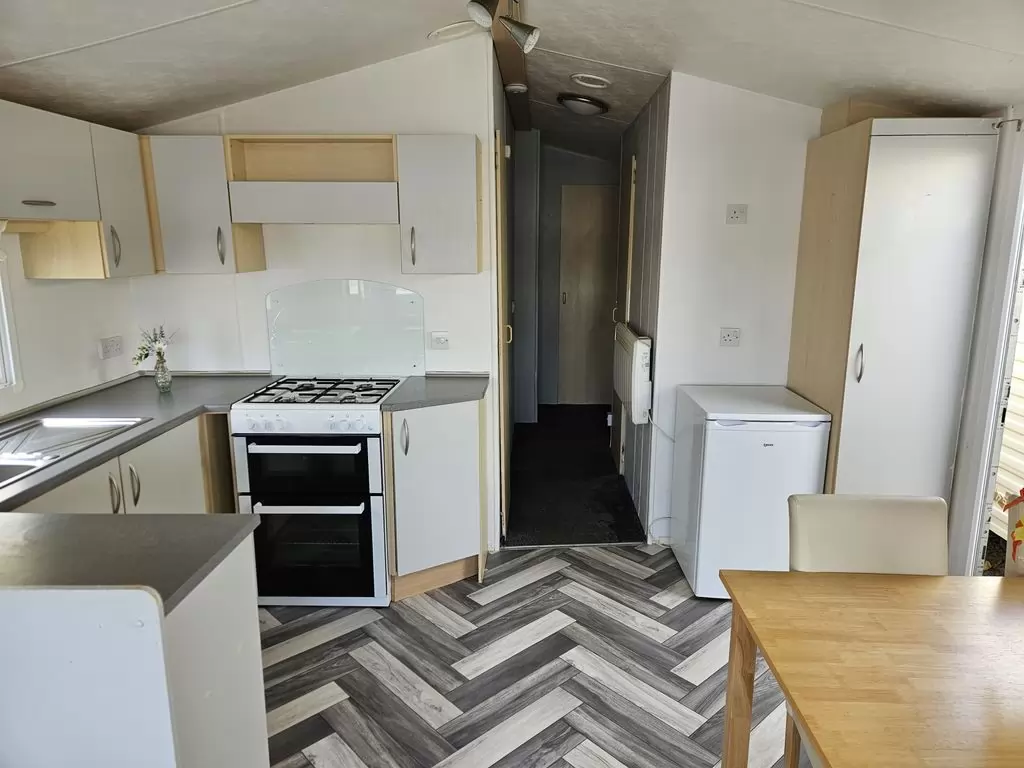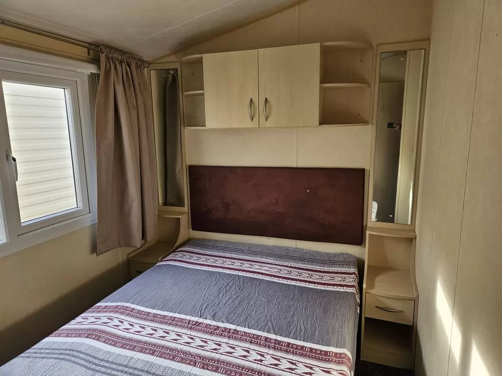 Extra široký, krásny, kompletne vybavený mobilheim 10,8 x 3,7m s jedným vchodom, SEDLOVOU STRECHOU S IMITÁCIOU STREŠNÝCH TAŠIEK, DVOJITÝMI (izolačnými) OKNAMI A DVERMI - dithermy. Priestranná obývacia izba, jedálenský kút, kuchyňa v tvare U vrátane spotrebičov, spálňa (dvojlôžko), izba (2 lôžka), izba (lôžko), kúpeľňa so sprchovacím kútom s pevnou zástenou a termostatickou batériou, wc s umývadlom zvlášť. Plynový krb + el. priamotopy, plynová karma na ohrev vody. Zvýšený strop v celom mobilheime !!