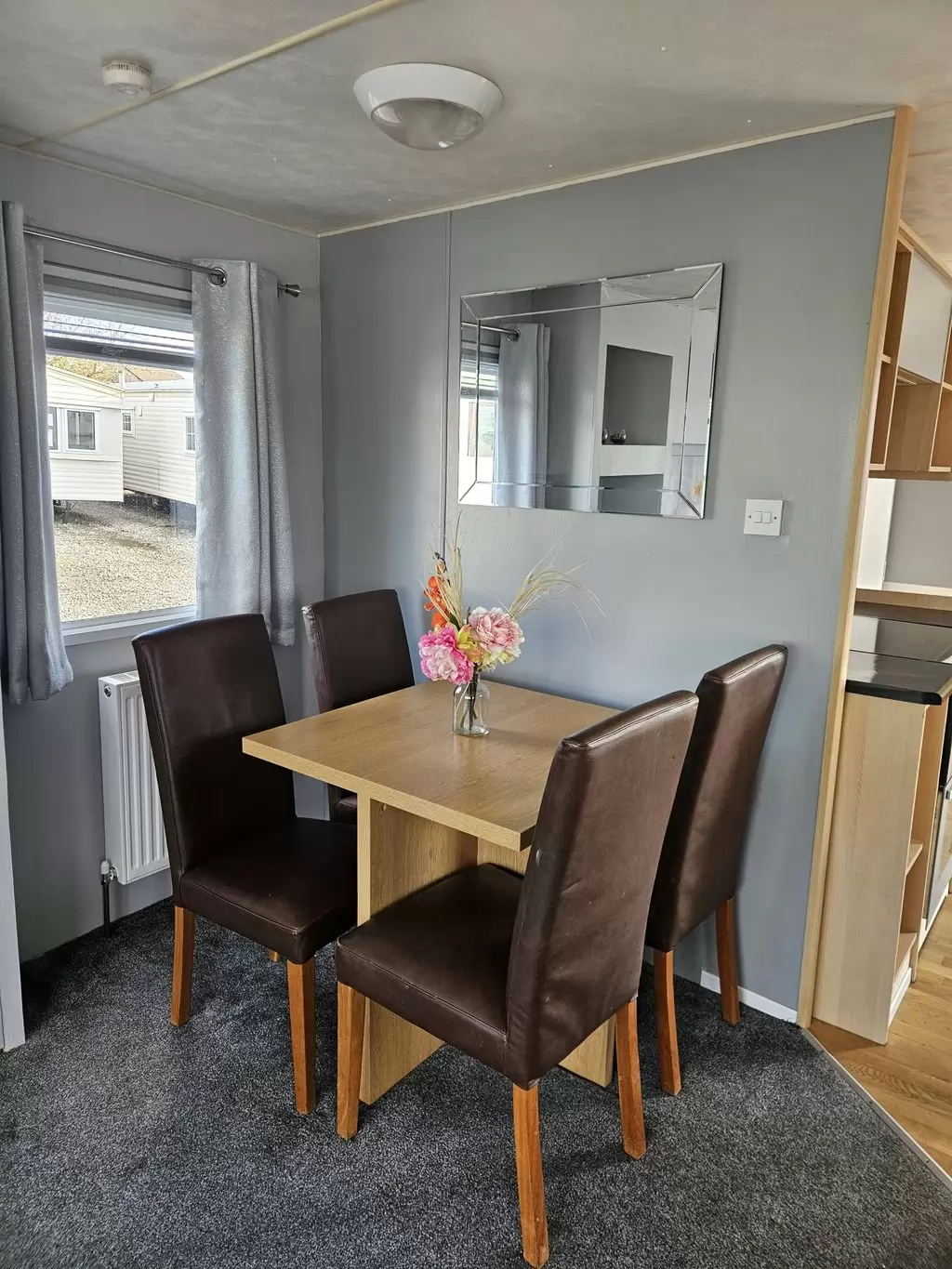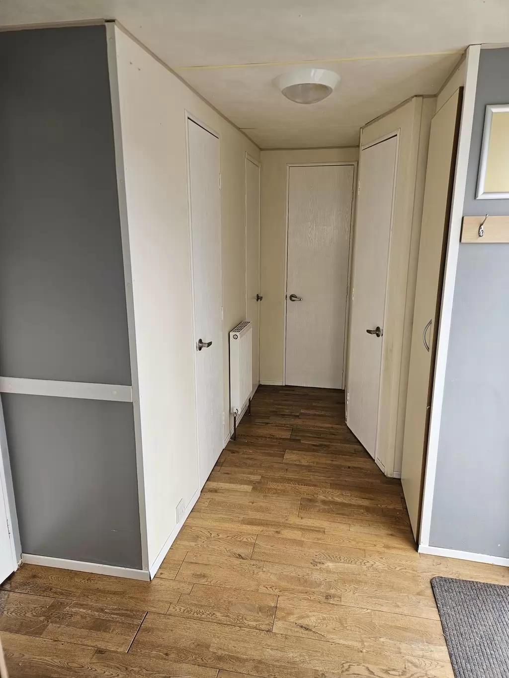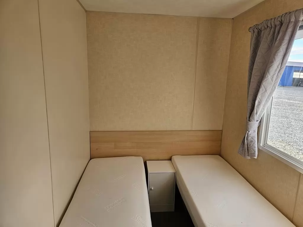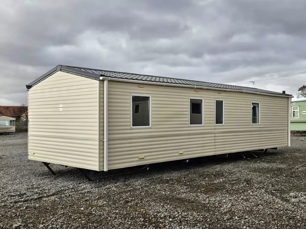 Extra široký, krásny, kompletne vybavený mobilheim 11,1 x 3,7m s jedným vchodom, SEDLOVOU STRECHOU S IMITÁCIOU STREŠNÝCH TAŠIEK, DVOJITÝMI (izolačnými) OKNAMI A DVERAMI - dithermy, CENTRÁLNYM VYKUROVANÍM - plynový kotol + radiátory vo všetkých miestnostiach + elektrický krb v obývacej izbe. Obývacia izba, jedálenský kút, kuchyňa vrátane spotrebičov, spálňa (dvojlôžko), izba (2 lôžka), izba (2 lôžka), kúpeľňa so sprchovacím kútom s pevnou zástenou + wc, druhé wc s umývadlom zvlášť. Zvýšený strop v celom mobilheime !!