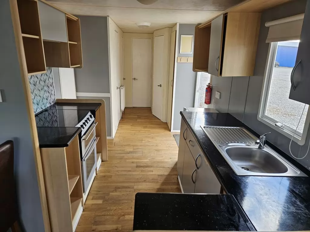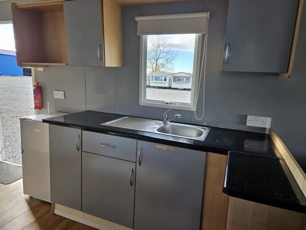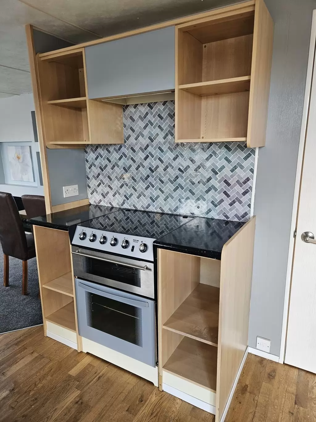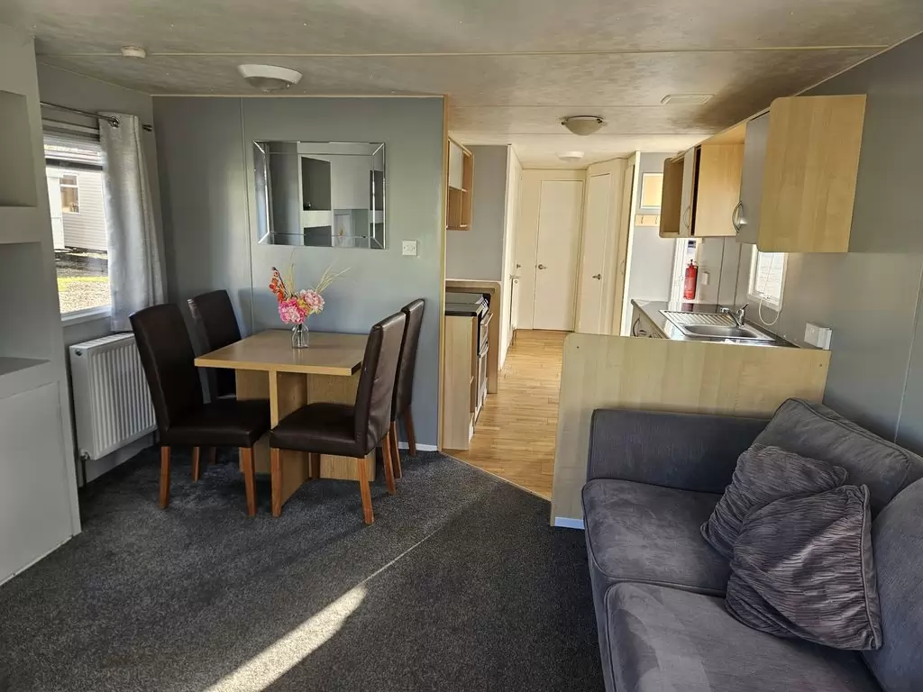 Extra široký, krásny, kompletne vybavený mobilheim 11,1 x 3,7m s jedným vchodom, SEDLOVOU STRECHOU S IMITÁCIOU STREŠNÝCH TAŠIEK, DVOJITÝMI (izolačnými) OKNAMI A DVERAMI - dithermy, CENTRÁLNYM VYKUROVANÍM - plynový kotol + radiátory vo všetkých miestnostiach + elektrický krb v obývacej izbe. Obývacia izba, jedálenský kút, kuchyňa vrátane spotrebičov, spálňa (dvojlôžko), izba (2 lôžka), izba (2 lôžka), kúpeľňa so sprchovacím kútom s pevnou zástenou + wc, druhé wc s umývadlom zvlášť. Zvýšený strop v celom mobilheime !!