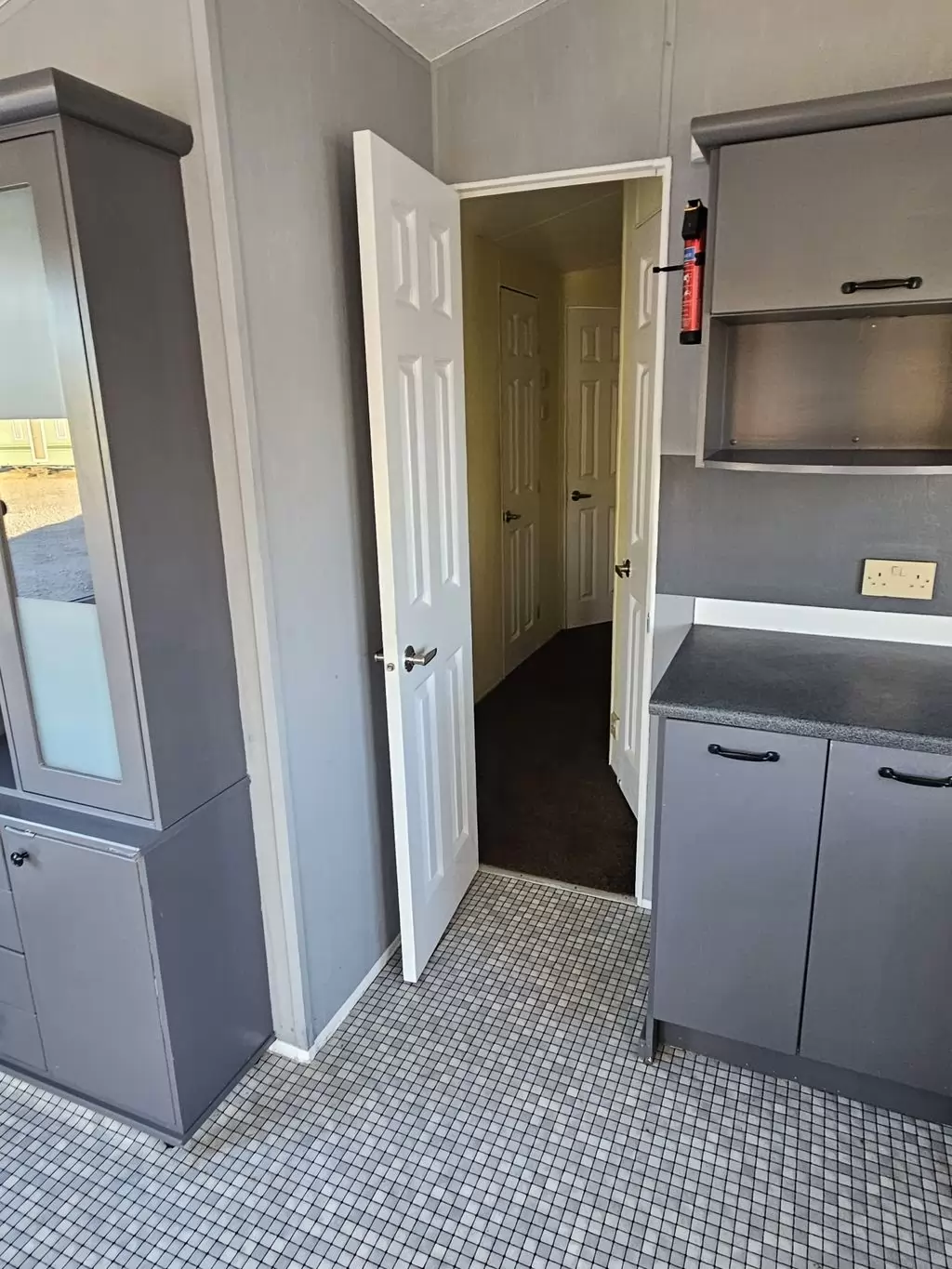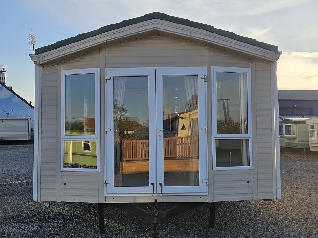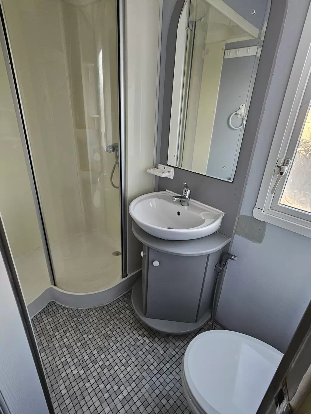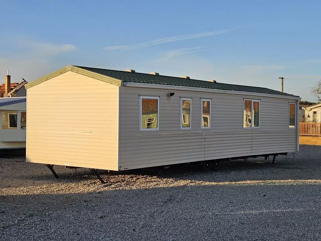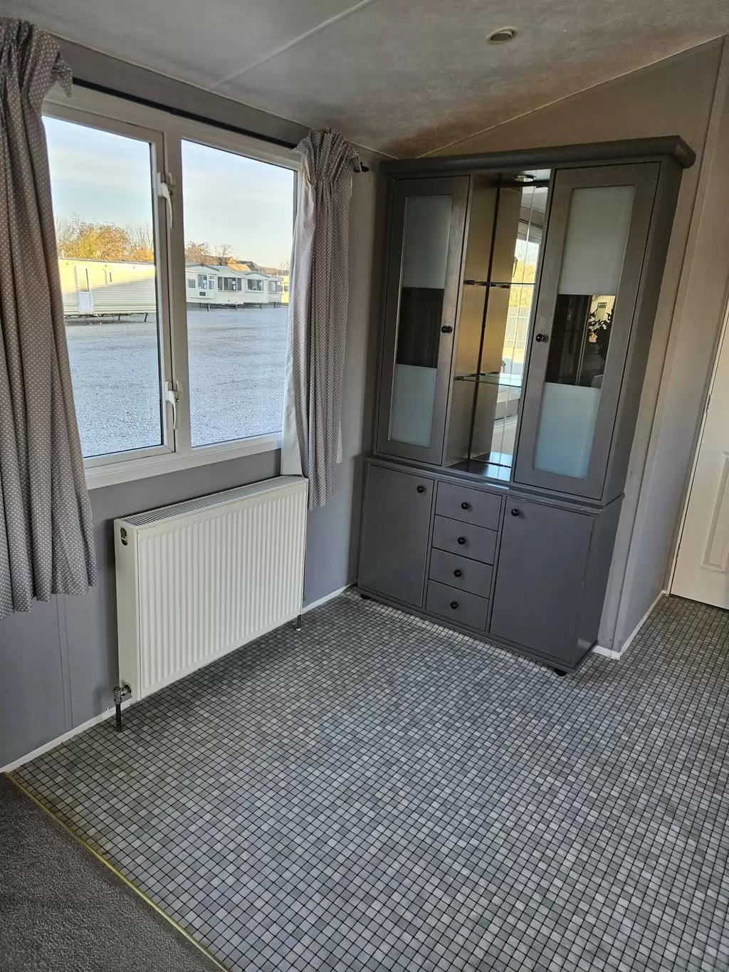 Extra široký, KRÁSNY mobilheim 11,8 x 3,7m s dvoma vchodmi - 1 vchod z čela, SEDLOVOU STRECHOU S IMITÁCIOU STREŠNÝCH TAŠIEK, DVOJITÝMI (izolačnými) OKNAMI A DVERAMI - dithermy, CENTRÁLNYM VYKUROVANÍM - plynový kotol + radiátory vo všetkých miestnostiach + elektrický krb v obývacej izbe. Priestranná obývacia izba, miesto na jedálenský kút, kuchyňa v tvare U (nový elektrický sporák), spálňa (dvojlôžko), izba (2 lôžka), izba (dvojlôžko), kúpeľňa so sprchovacím kútom s pevnou zástenou a termostatickou batériou + wc, druhé wc s umývadlom. Zvýšený strop v celom mobilheime!