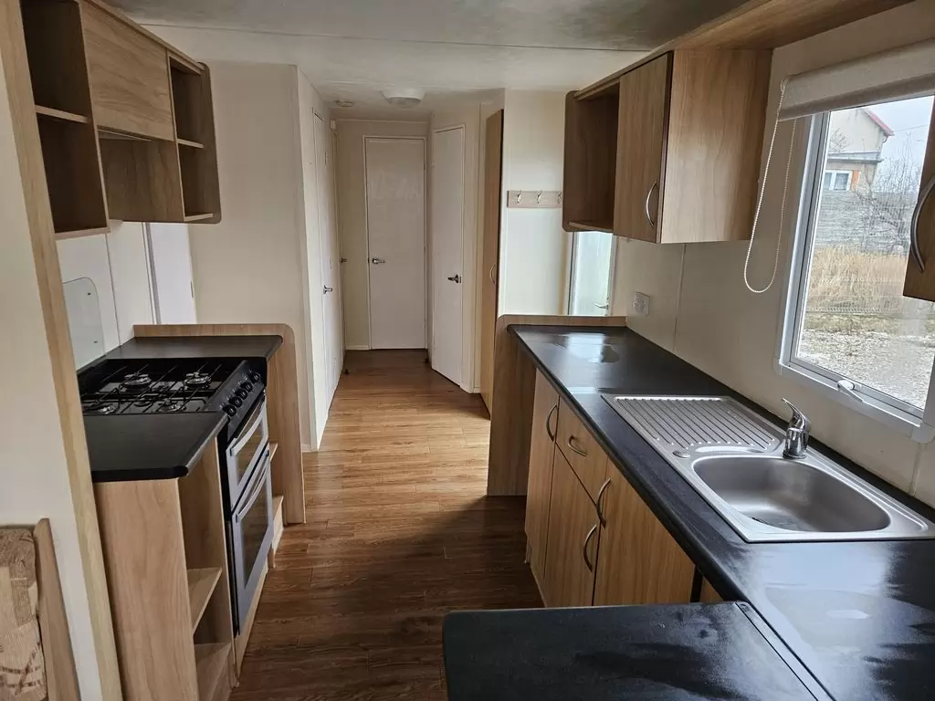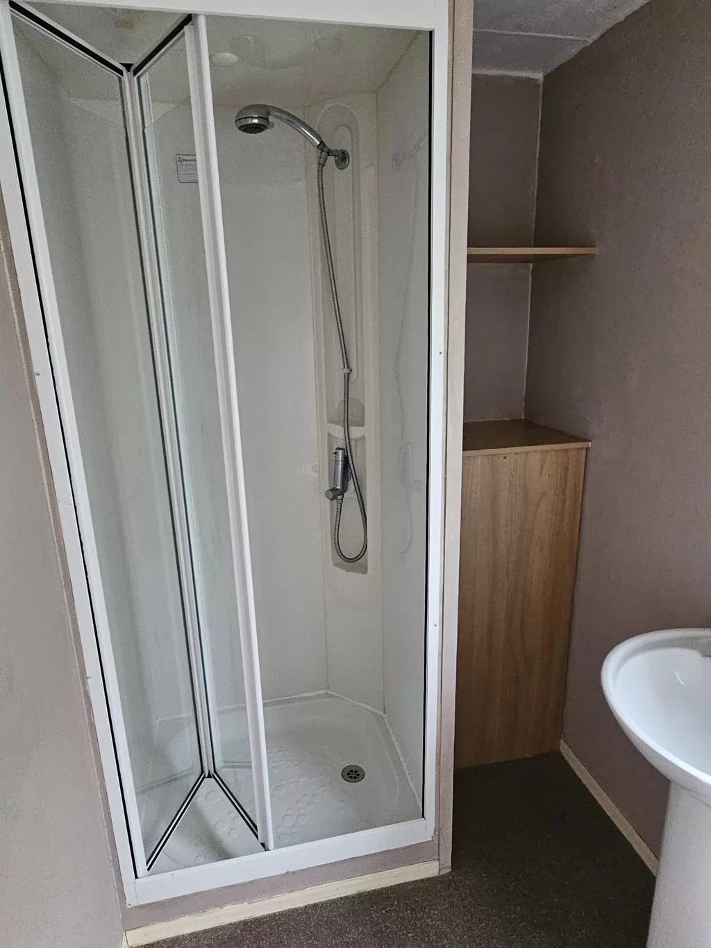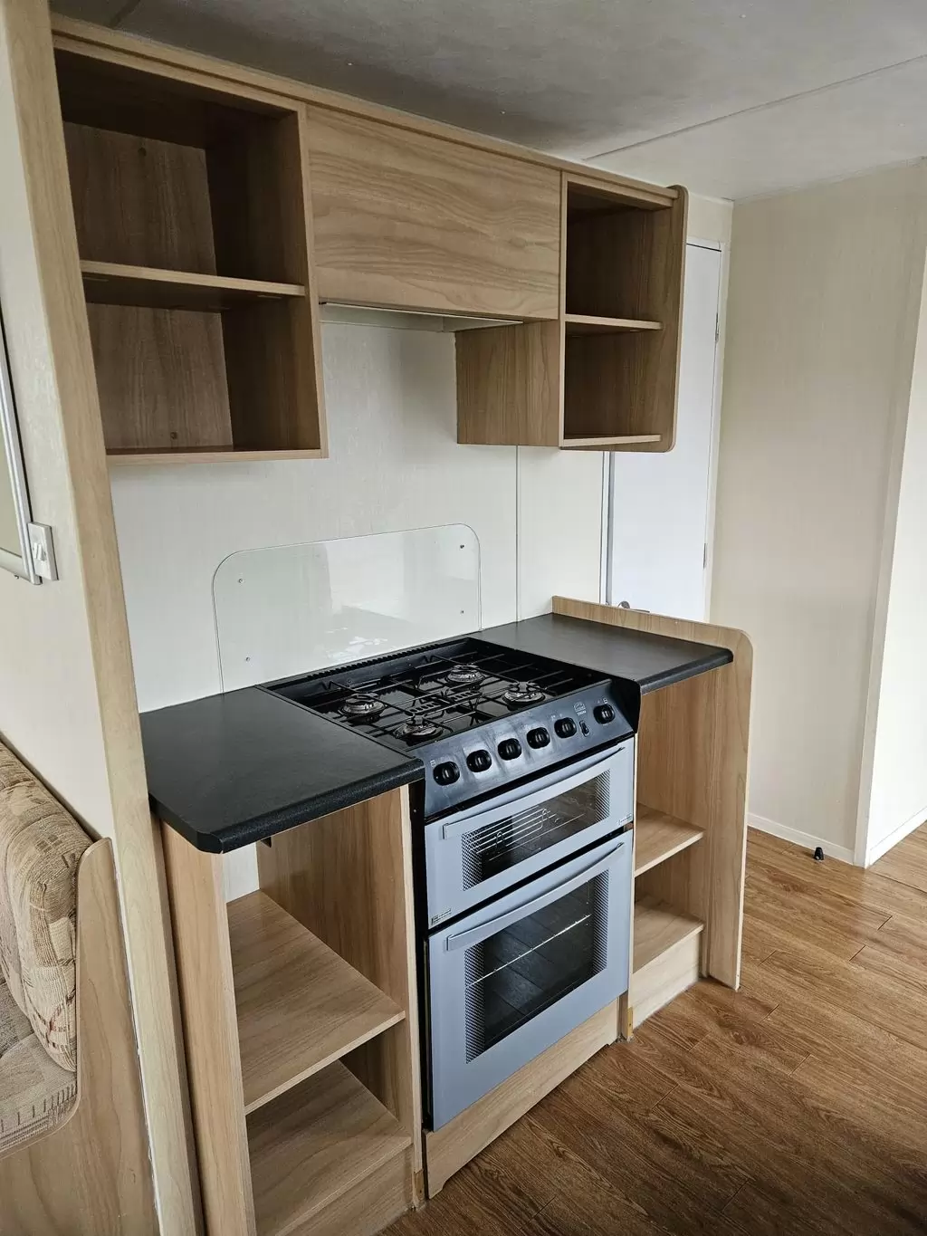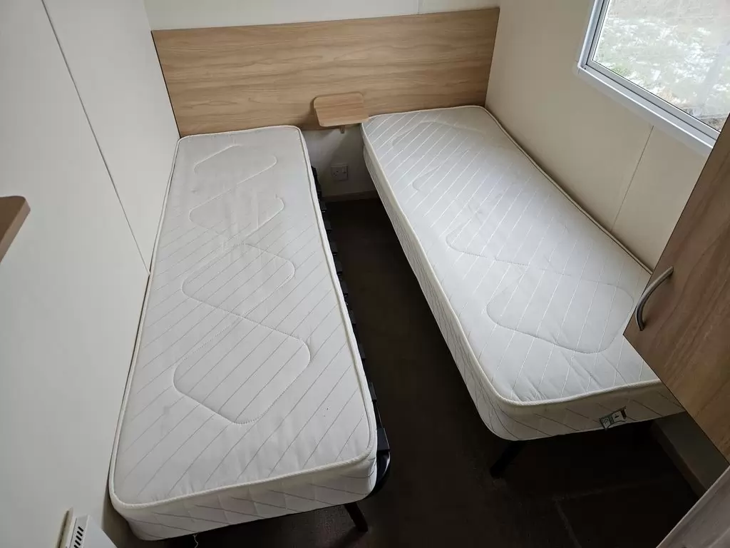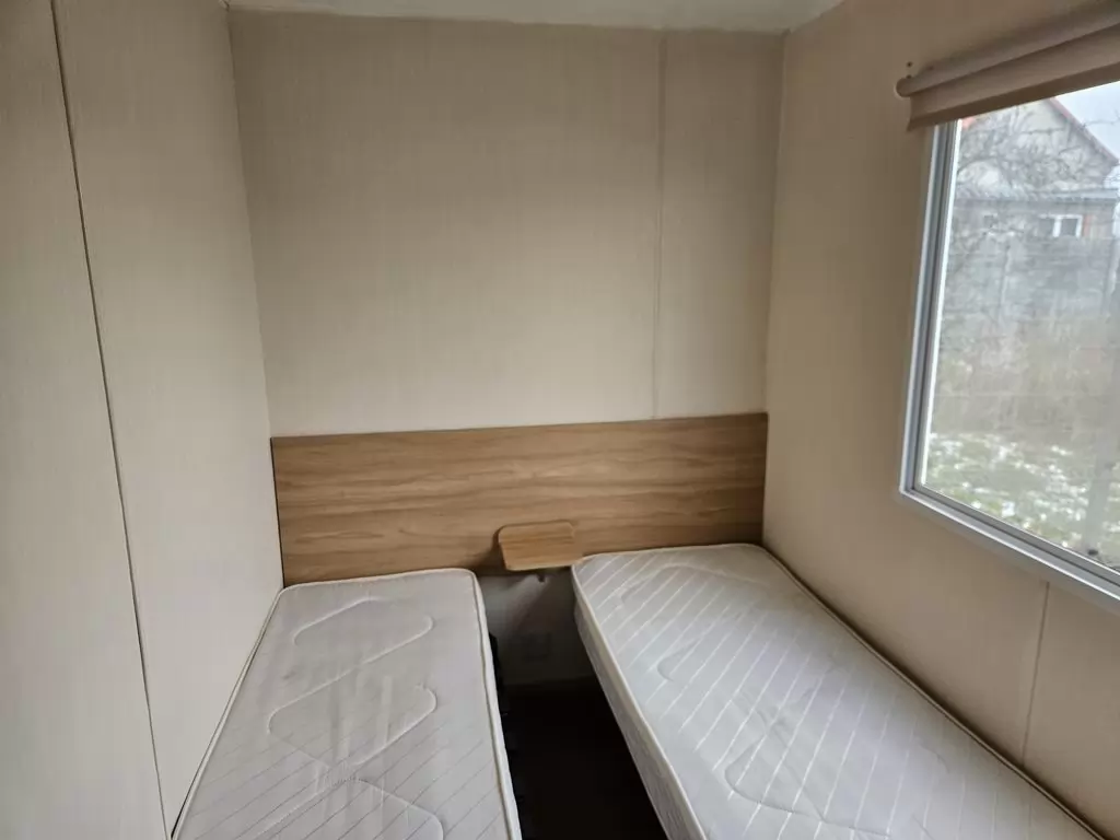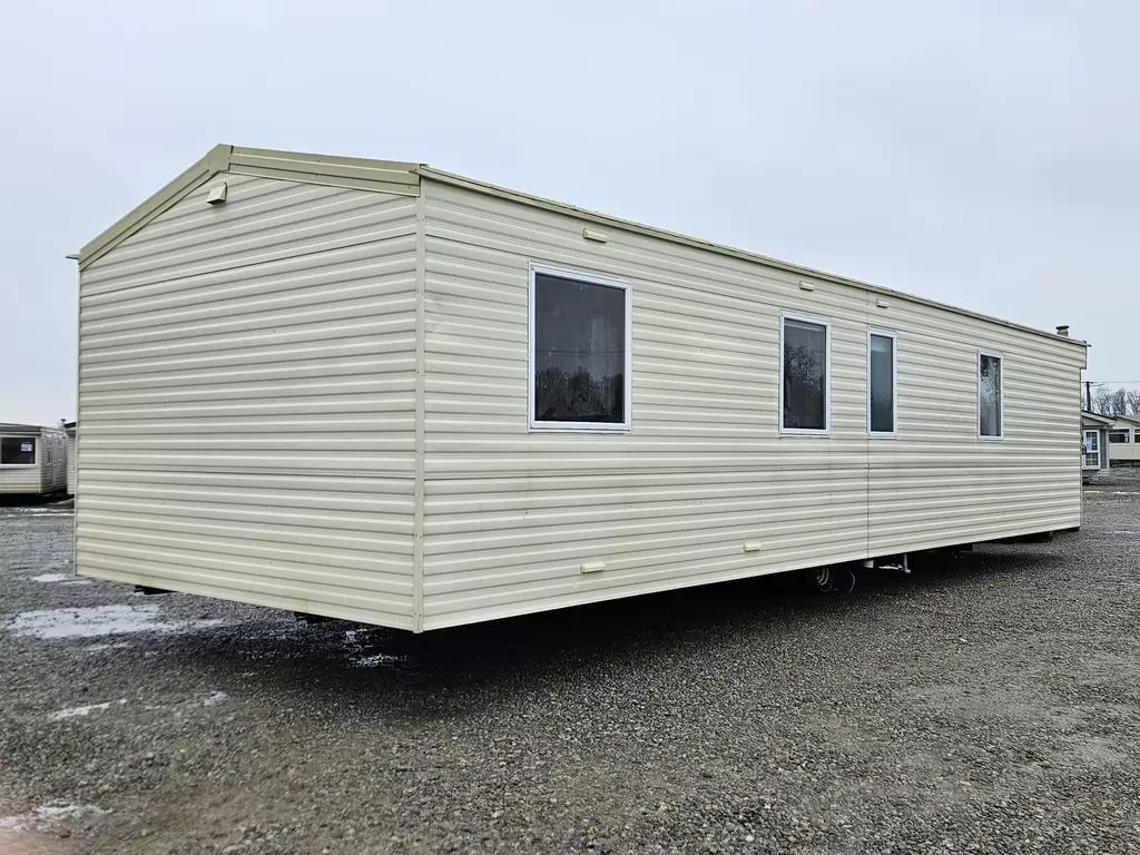 Extra široký, KRÁSNY, čistý, kompletne vybavený mobilheim 11,1 x 3,7m s jedným vchodom, SEDLOVOU STRECHOU, DVOJITÝMI (izolačnými) OKNAMI A DVERMI - dithermy. Priestranná obývacia izba (rozkladacia sedačka), jedálenský kút, kuchyňa v tvare L, spálňa (dvojlôžko), izba (2 lôžka), izba (2 lôžka), kúpeľňa so sprchovacím kútom s pevnou zástenou a termostatickou batériou + wc, druhé wc s umývadlom zvlášť. Plynový krb + el. priamotopy v izbách, plynová karma na ohrev vody. Zvýšený strop v celom mobilheime !!