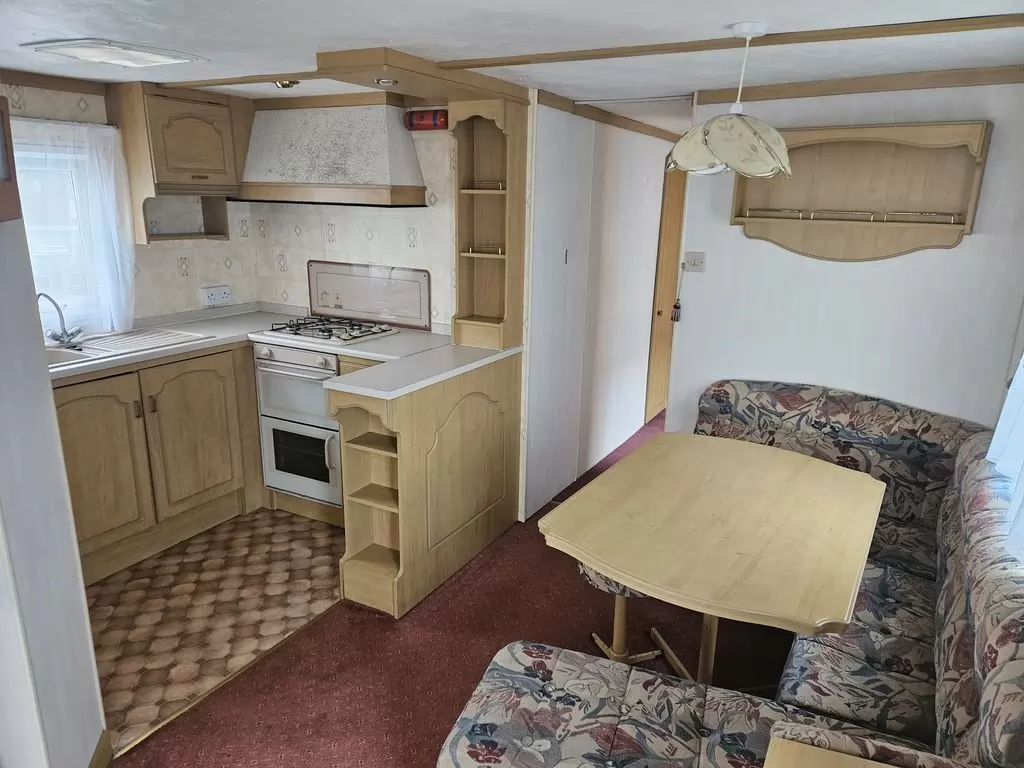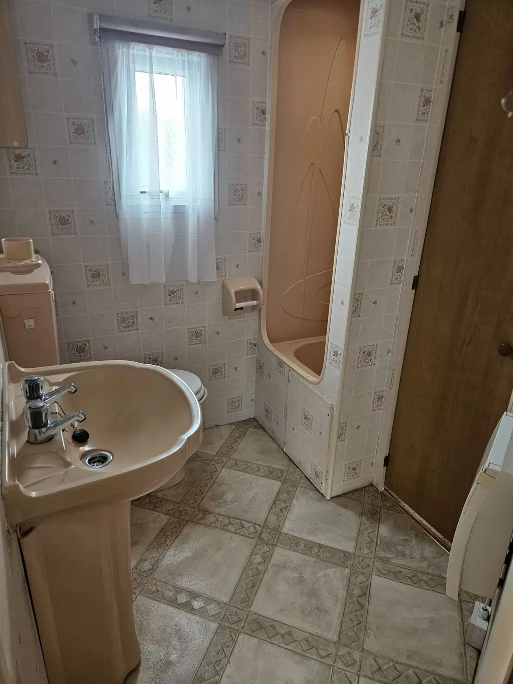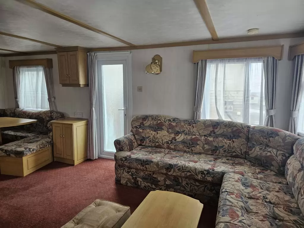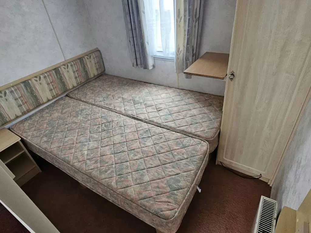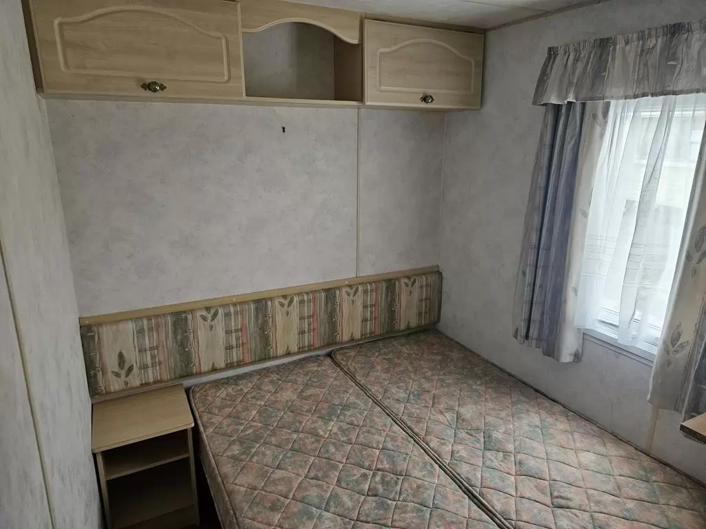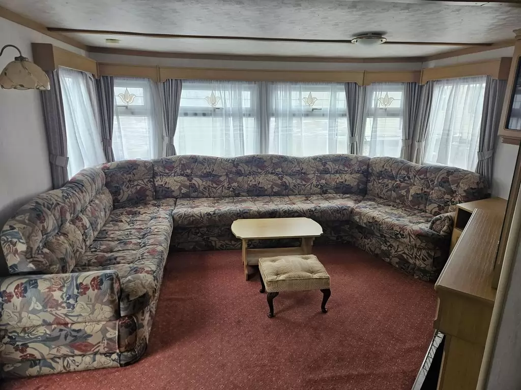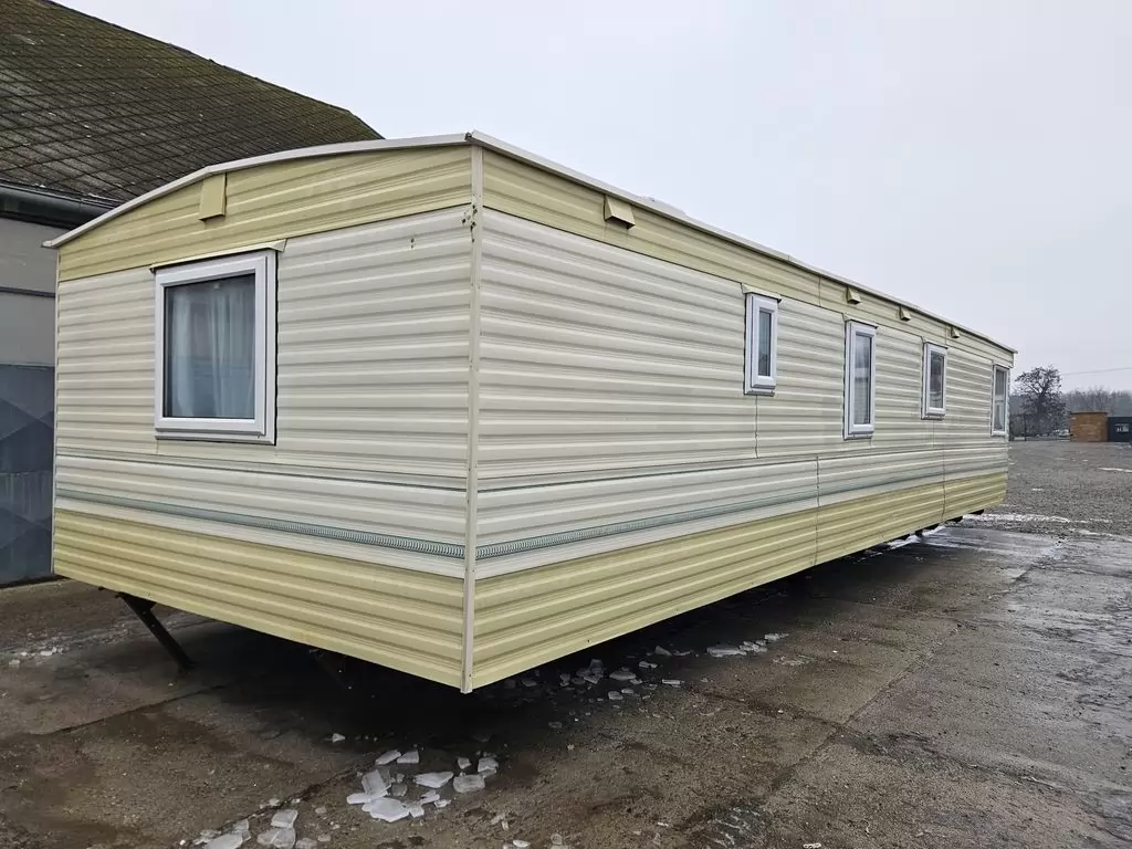 Extra široký, krásny, kompletne vybavený mobilheim 11 x 3,7m s dvoma vchodmi, DVOJITÝMI ( izolačnými ) OKNAMI A DVERMI - dithermy. Obývacia izba (rozkladacia sedačka), jedálenský kút, kuchyňa v tvare U vrátane spotrebičov, priestranná spálňa (dvojlôžko), izba (2 lôžka), kúpeľňa so sprchovacím kútom so sedacou vaničkou + wc, druhé wc s umývadlom zvlášť. Plynový krb + el. priamotopy v izbách, plynová karma na ohrev vody.