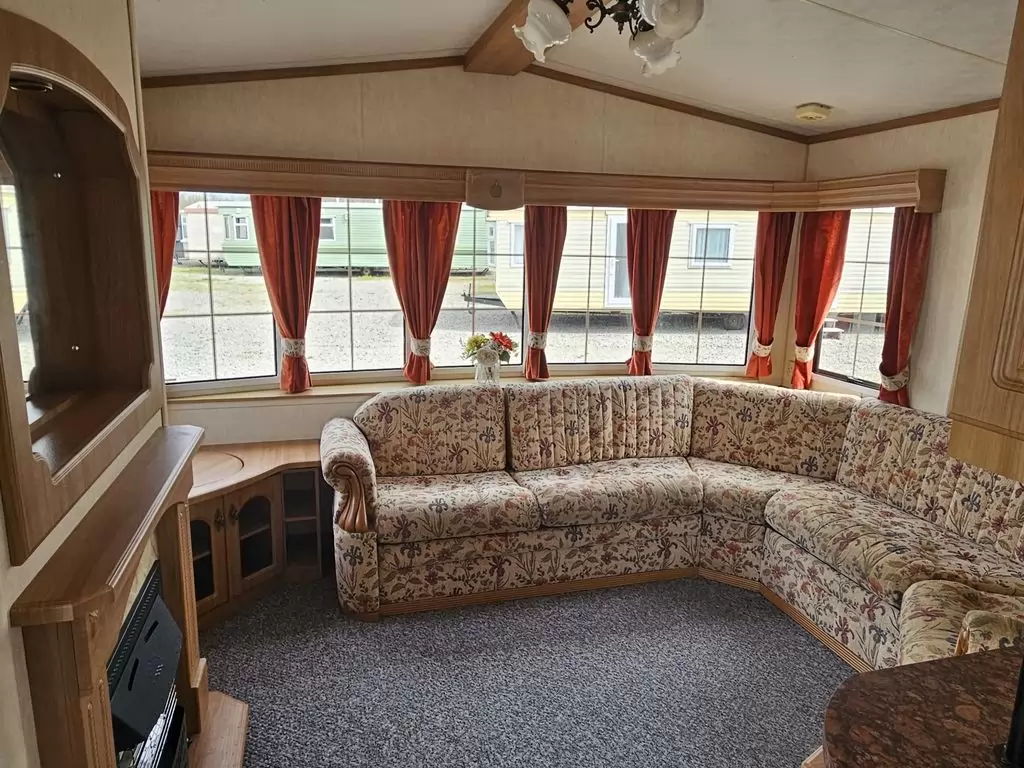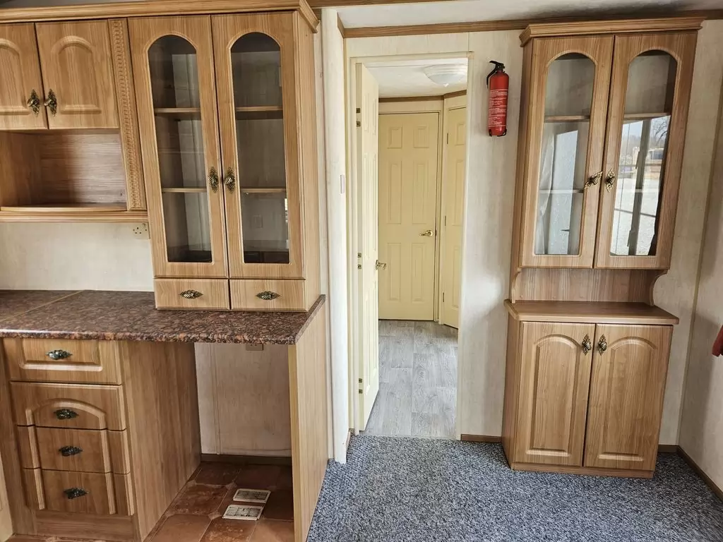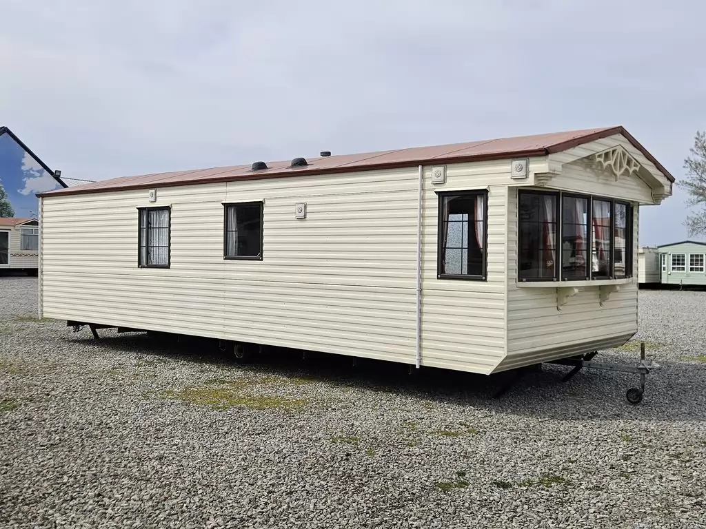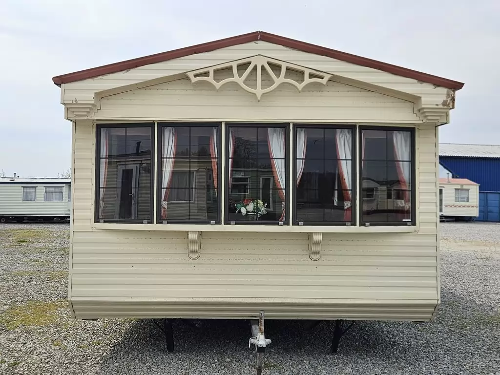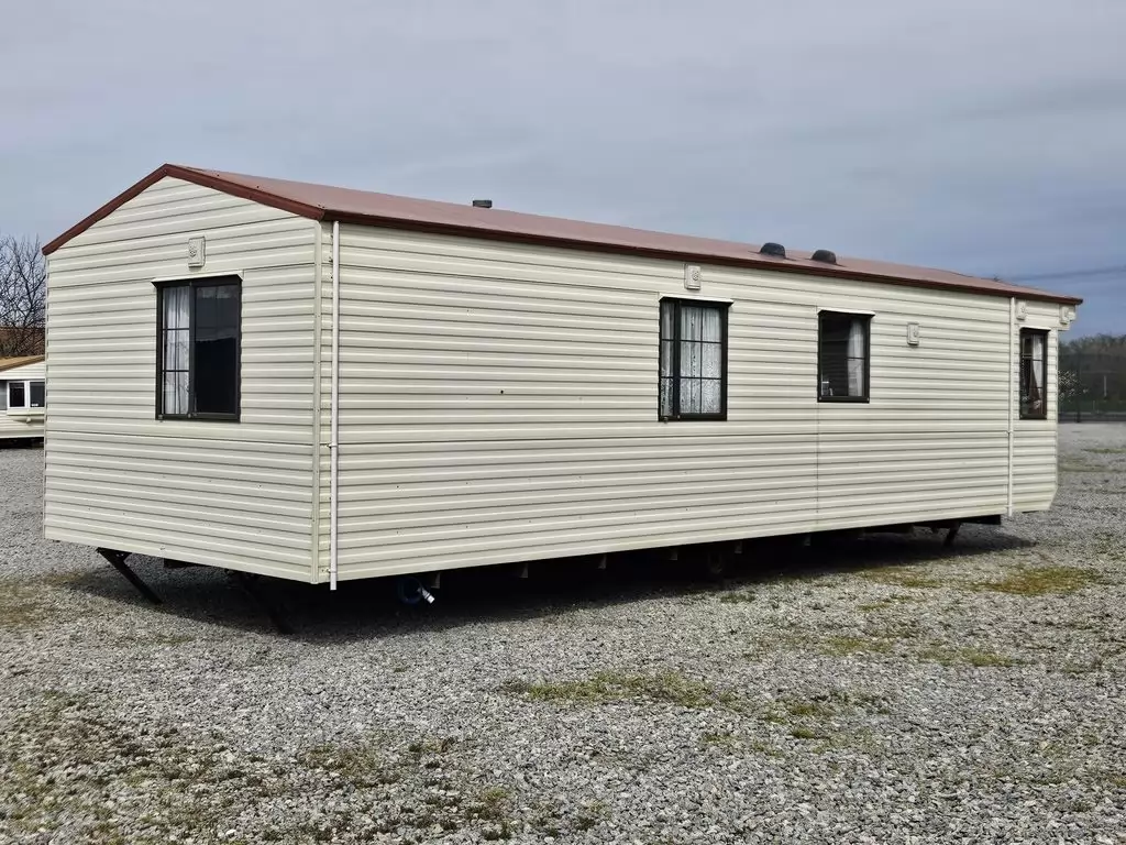 Extra široký, KRÁSNY, kompletne vybavený mobilheim 10,1 x 3,7m s dvoma vchodmi, SEDLOVOU STRECHOU, DVOJITÝMI (izolačnými) OKNAMI A DVERMI - dithermy. Obývacia izba (rozkladacia sedačka), miesto na jedálenský kút, kuchyňa v tvare U, spálňa (dvojlôžko s úložným priestorom), izba (2 lôžka), kúpeľňa so sprchovacím kútom s pevnou zástenou a sedacou vaničkou + wc. Plynový krb, plynová karma na ohrev vody. Zvýšený strop v celom mobilheime !!