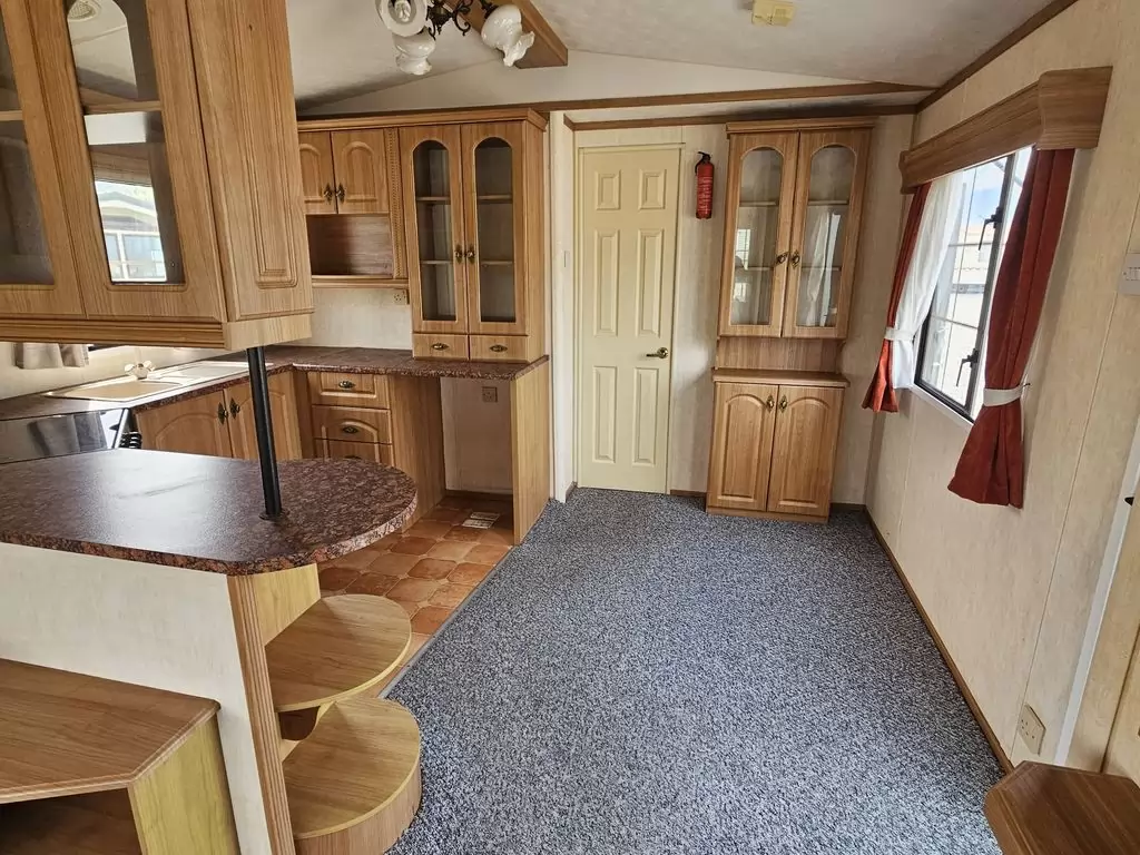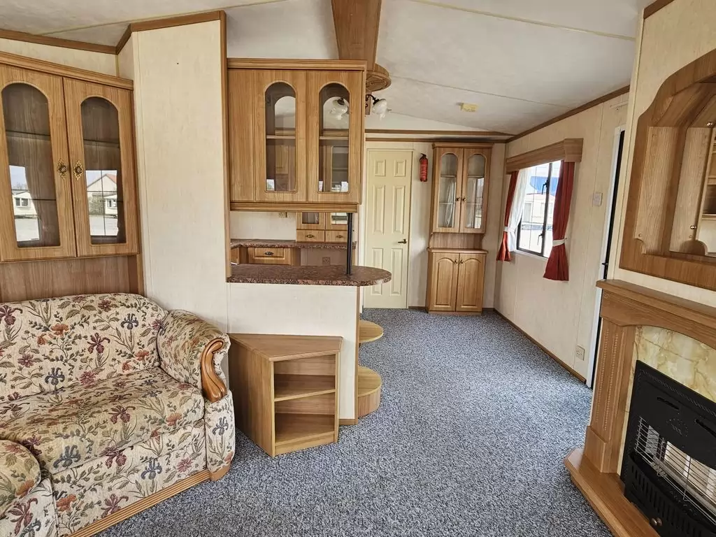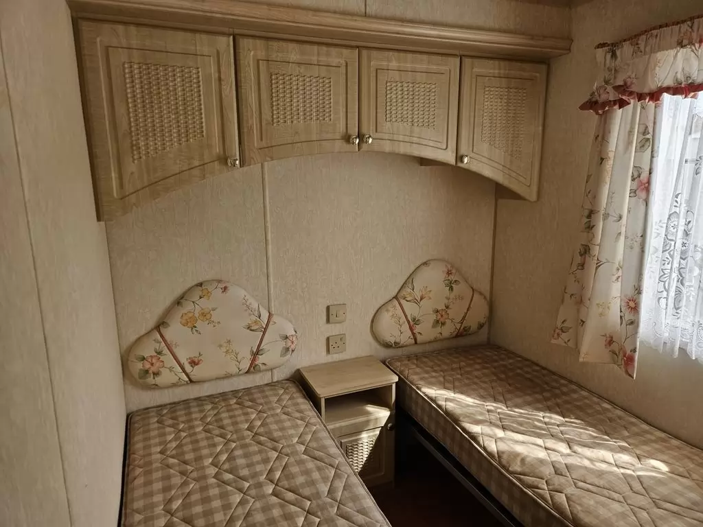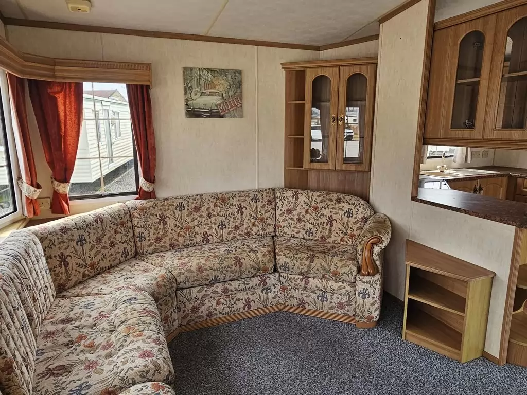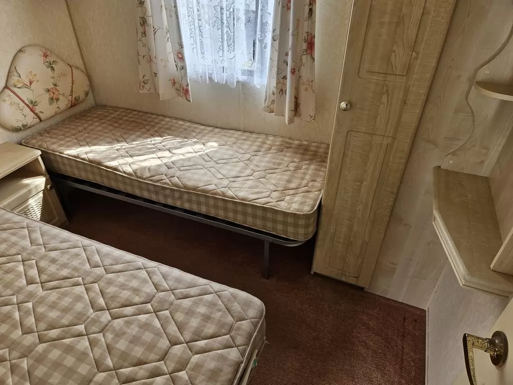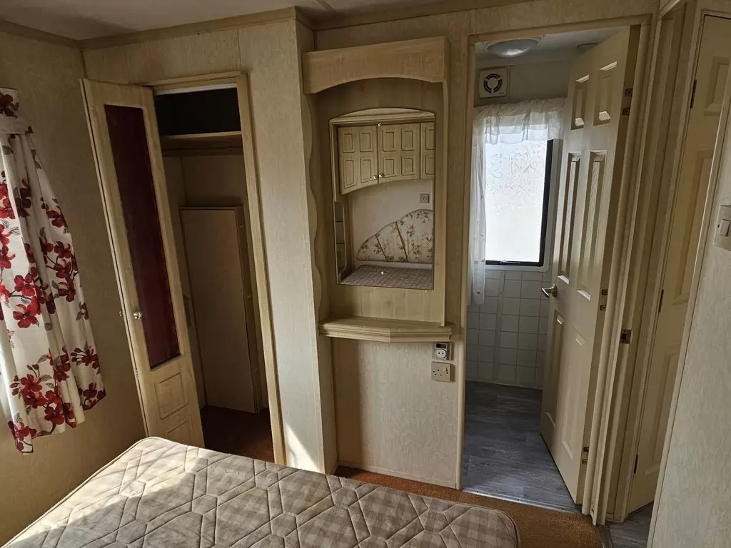 Extra široký, KRÁSNY, kompletne vybavený mobilheim 10,1 x 3,7m s dvoma vchodmi, SEDLOVOU STRECHOU, DVOJITÝMI (izolačnými) OKNAMI A DVERMI - dithermy. Obývacia izba (rozkladacia sedačka), miesto na jedálenský kút, kuchyňa v tvare U, spálňa (dvojlôžko s úložným priestorom), izba (2 lôžka), kúpeľňa so sprchovacím kútom s pevnou zástenou a sedacou vaničkou + wc. Plynový krb, plynová karma na ohrev vody. Zvýšený strop v celom mobilheime !!