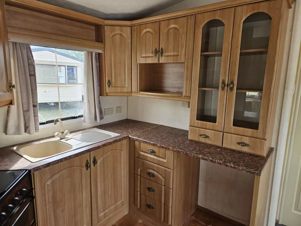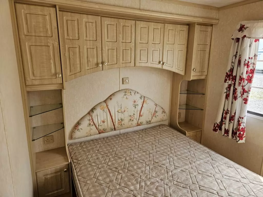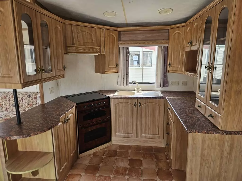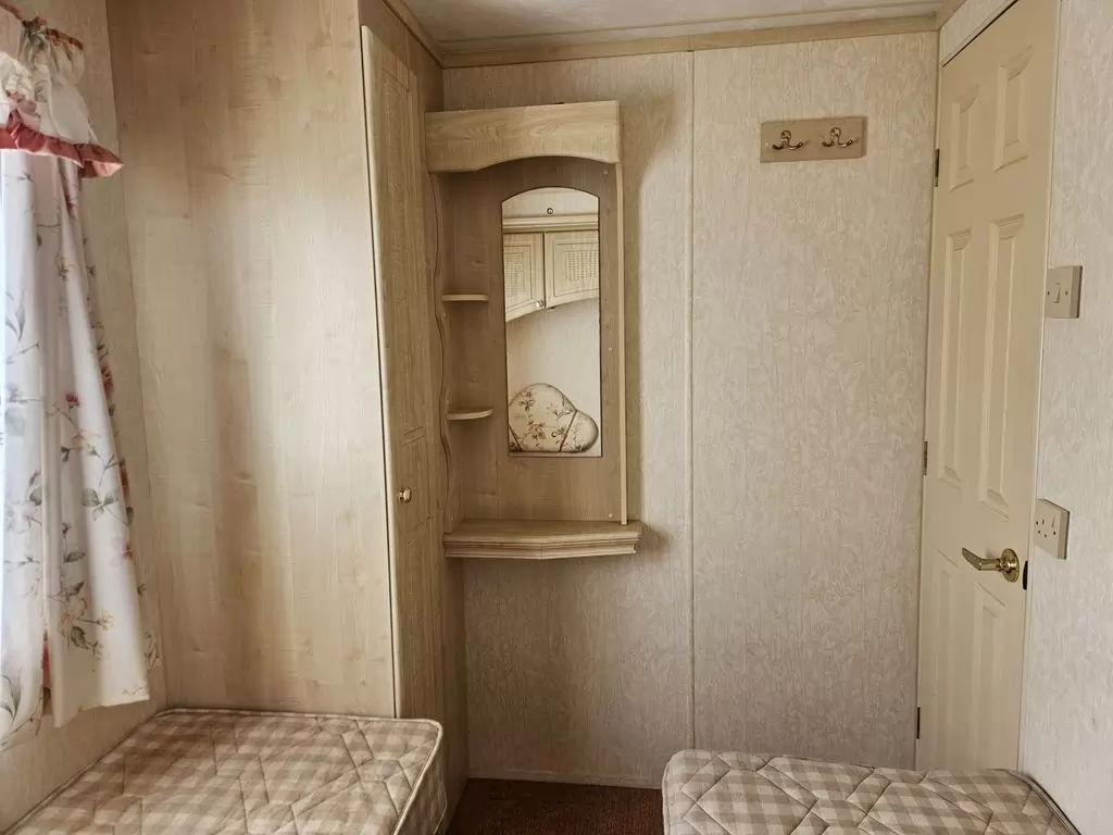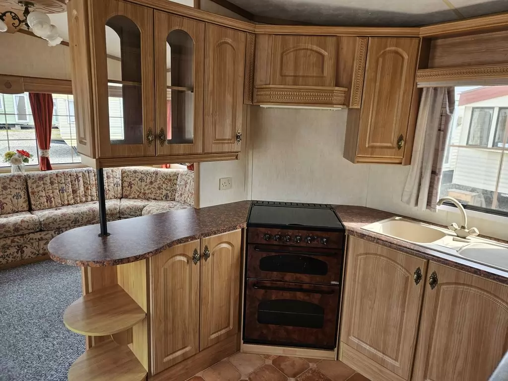 Extra široký, KRÁSNY, kompletne vybavený mobilheim 10,1 x 3,7m s dvoma vchodmi, SEDLOVOU STRECHOU, DVOJITÝMI (izolačnými) OKNAMI A DVERMI - dithermy. Obývacia izba (rozkladacia sedačka), miesto na jedálenský kút, kuchyňa v tvare U, spálňa (dvojlôžko s úložným priestorom), izba (2 lôžka), kúpeľňa so sprchovacím kútom s pevnou zástenou a sedacou vaničkou + wc. Plynový krb, plynová karma na ohrev vody. Zvýšený strop v celom mobilheime !!