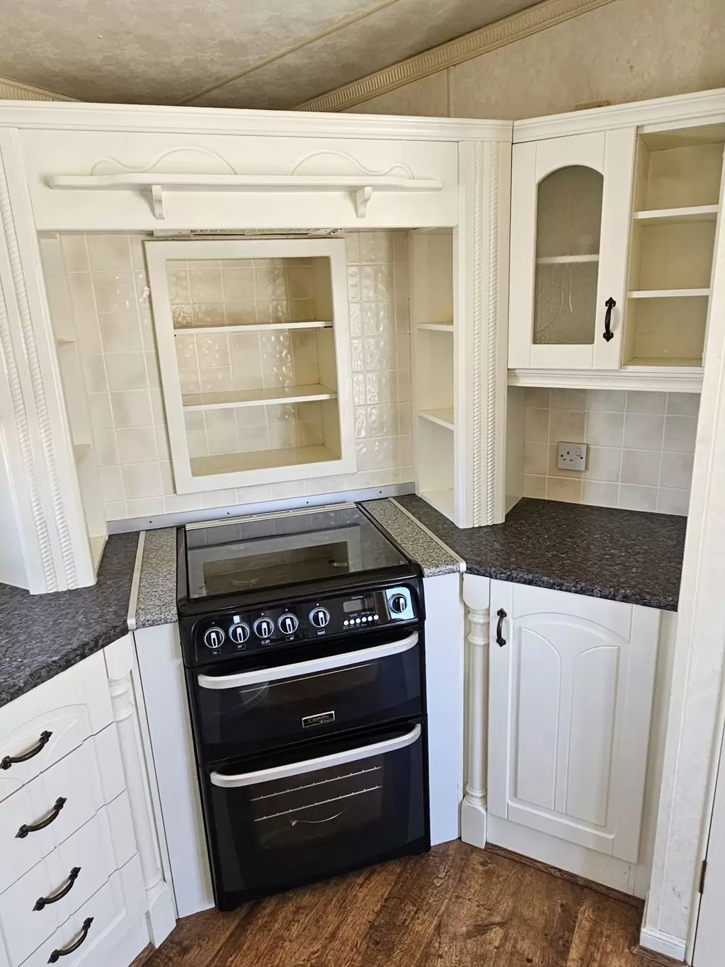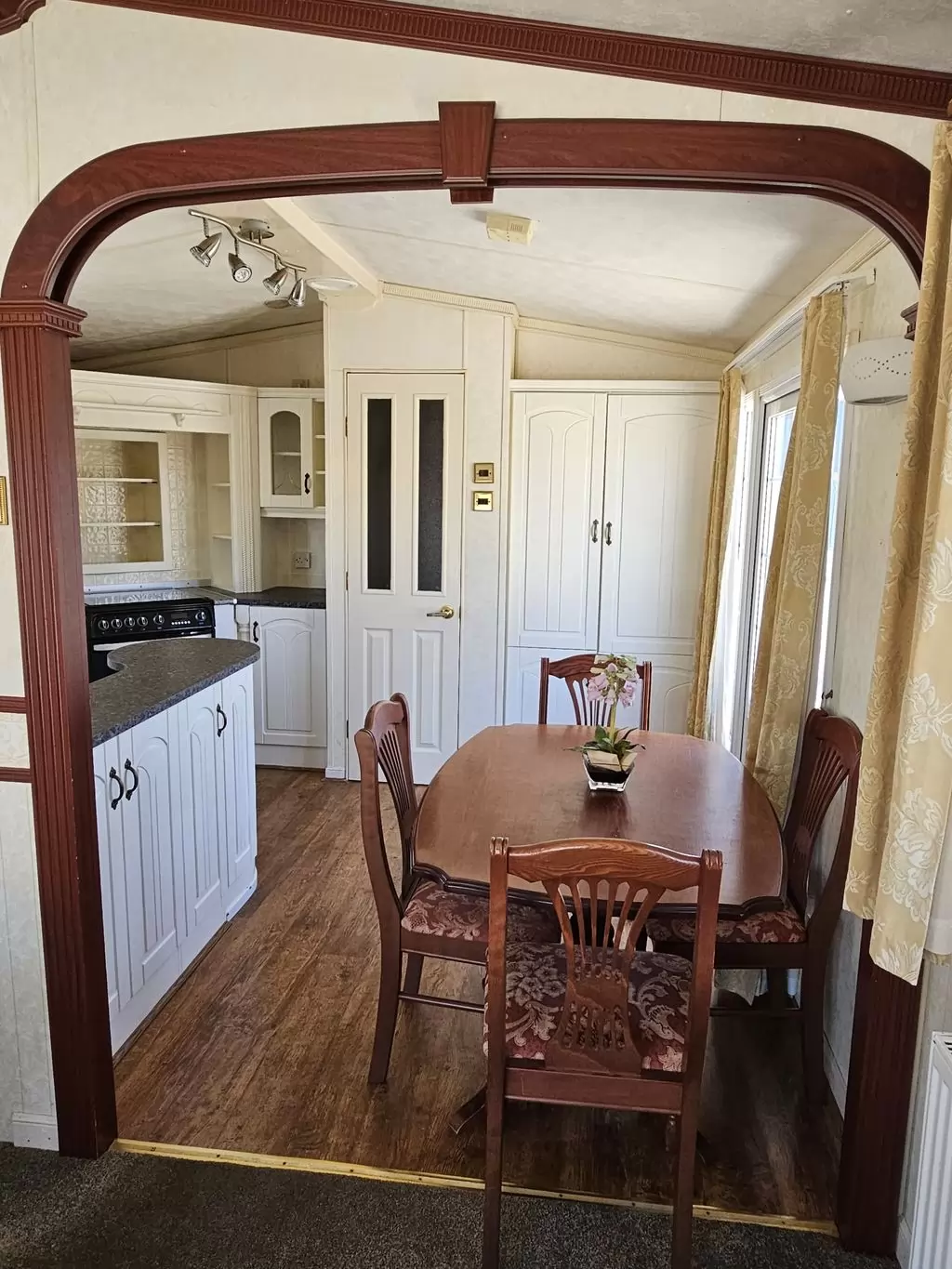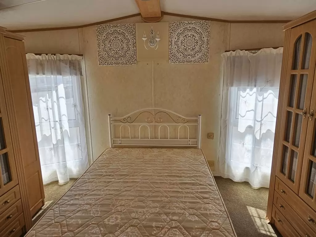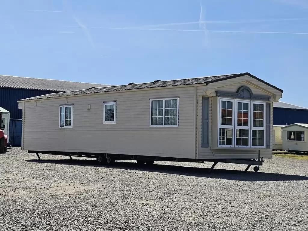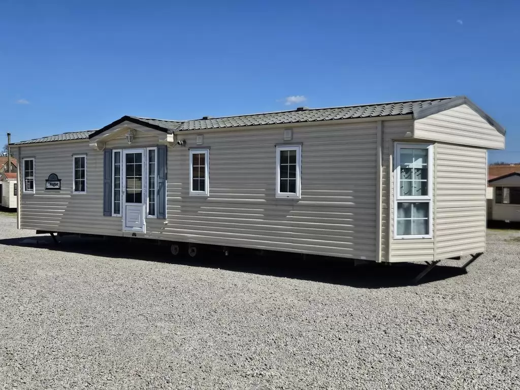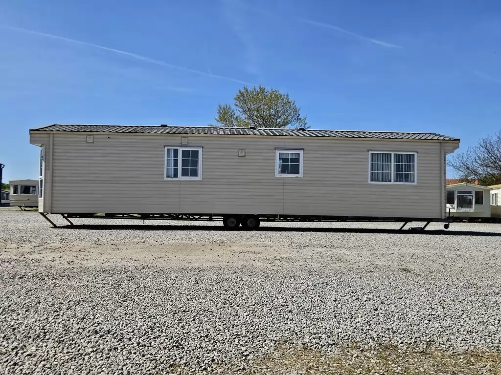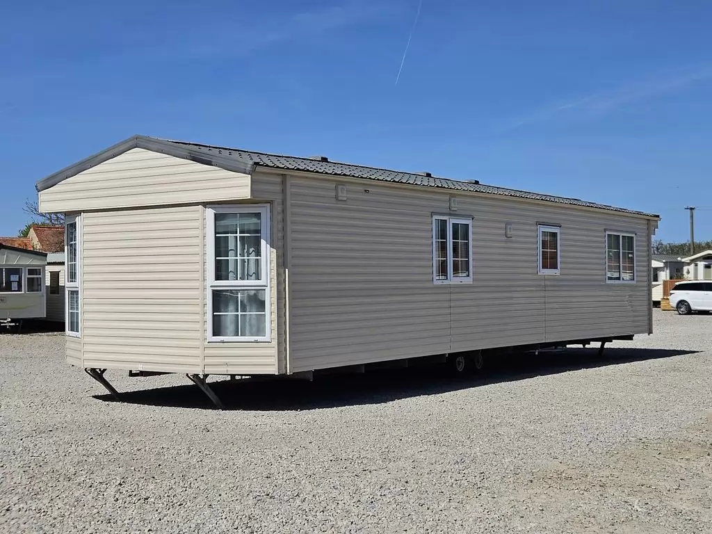 Extra široký, nádherný, čistý, kompletne vybavený mobilheim 12,5 x 3,7m s jedným vchodom s arkierom, SEDLOVOU STRECHOU S IMITÁCIOU STREŠNÝCH TAŠIEK, DVOJITÝMI (izolačnými) OKNAMI A DVERAMI - dithermy s IMITACIOU OKENIC, CENTRÁLNYM VYKUROVANÍM - plynový kotol + radiátory vo všetkých miestnostiach + elektrický krb v obývacej izbe. Priestranná obývacia izba, jedálenský kút, kuchyňa v tvare U vrátane spotrebičov, spálňa (dvojlôžko s úložným priestorom) + vlastný wc s umývadlom, izba (2 lôžka), kúpeľňa so sprchovacím kútom s pevnou zástenou, sedacou vaničkou a termostatickou batériou + wc. POZINKOVANÝ RÁM !! Zvýšený strop v celom mobilheime !!