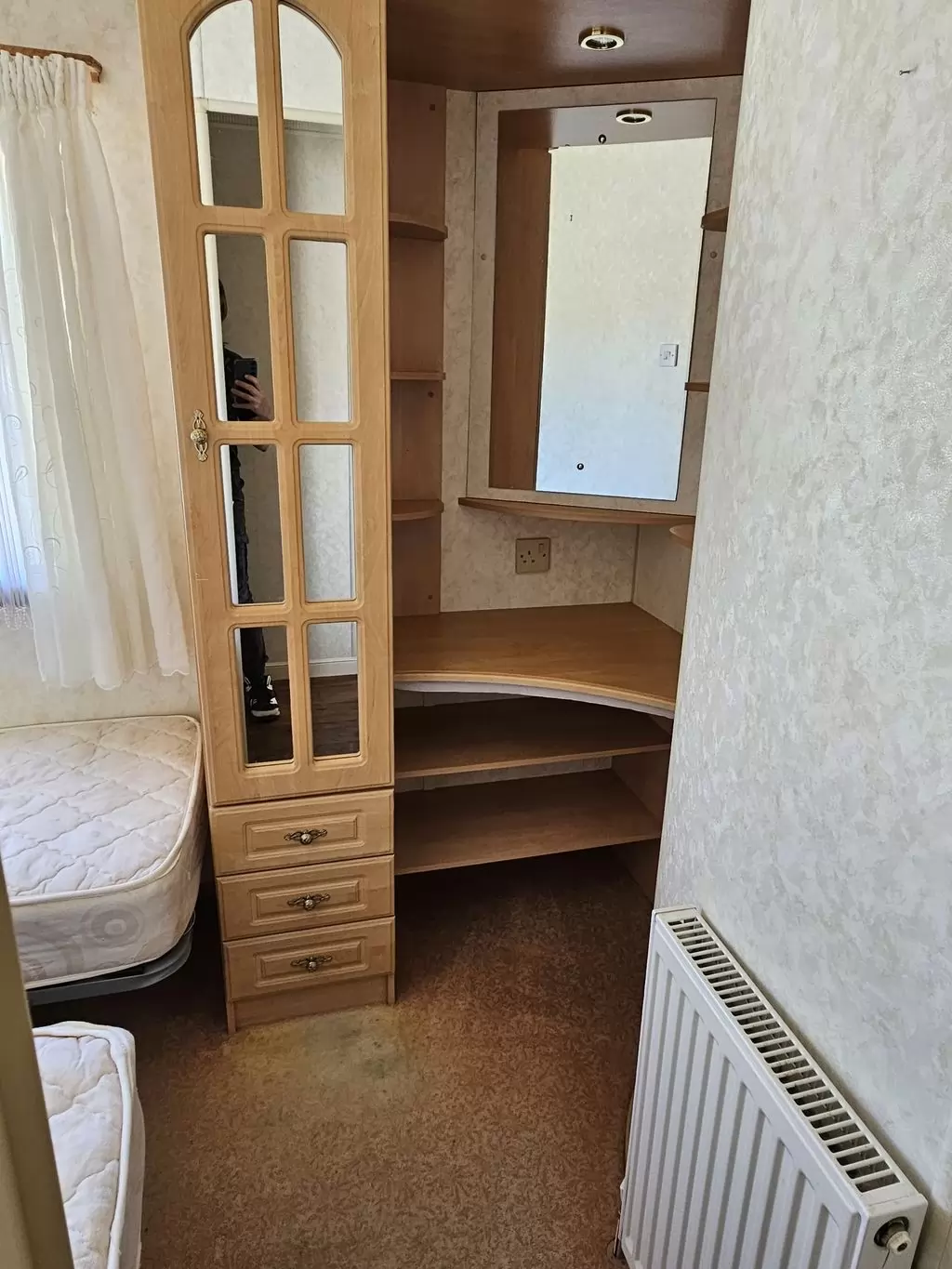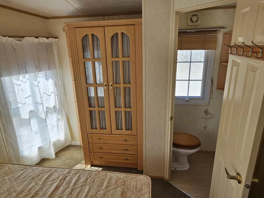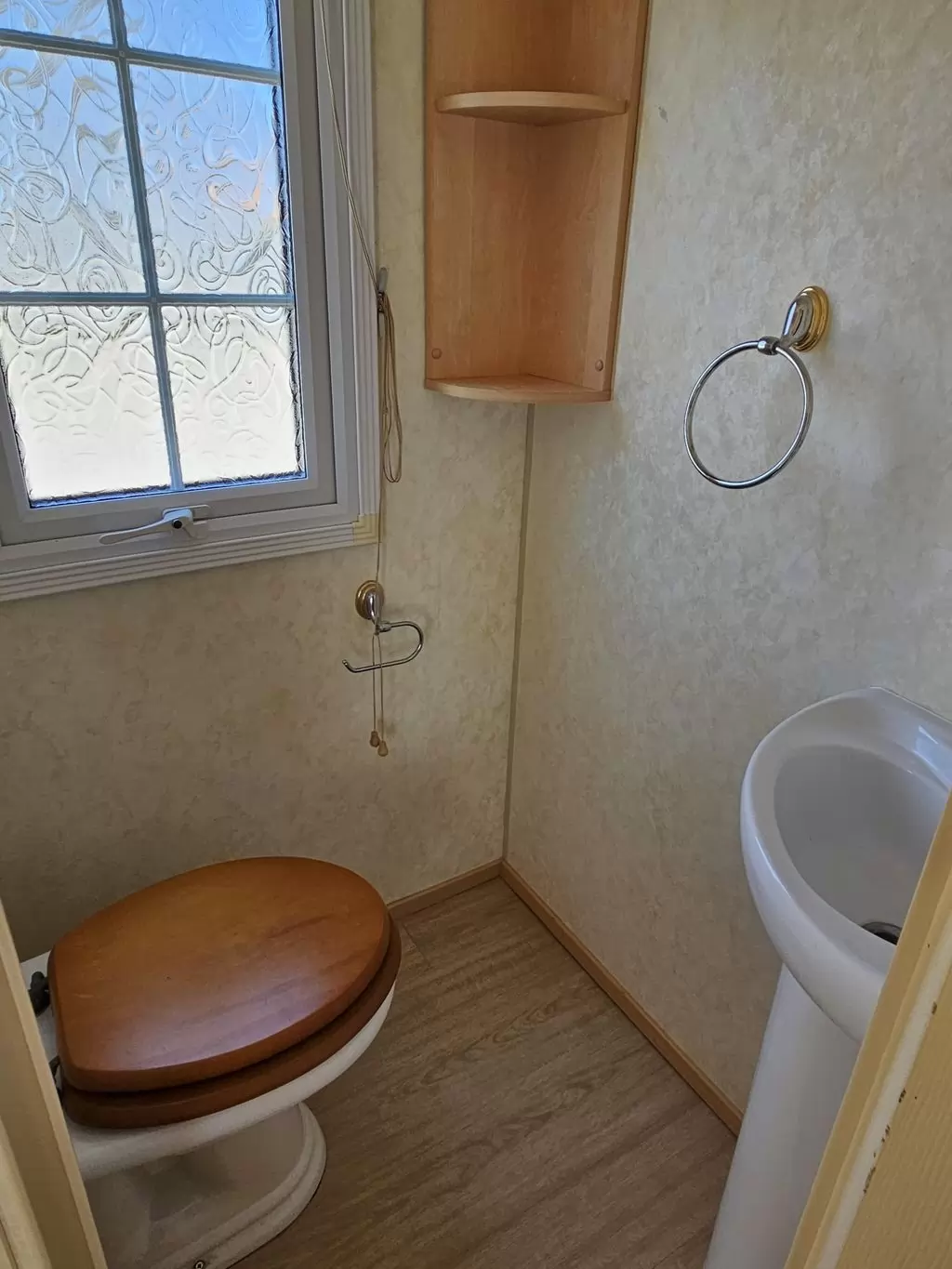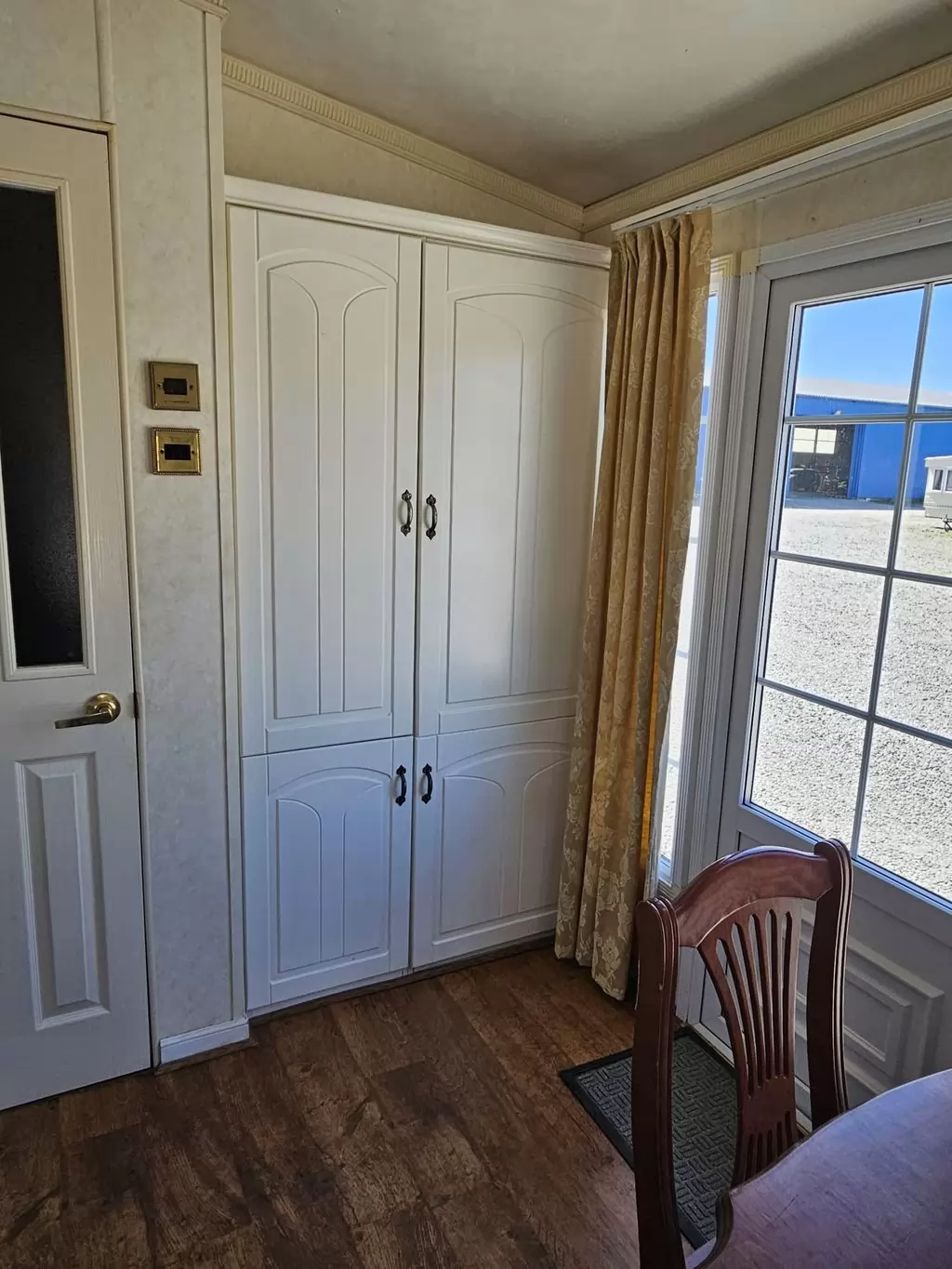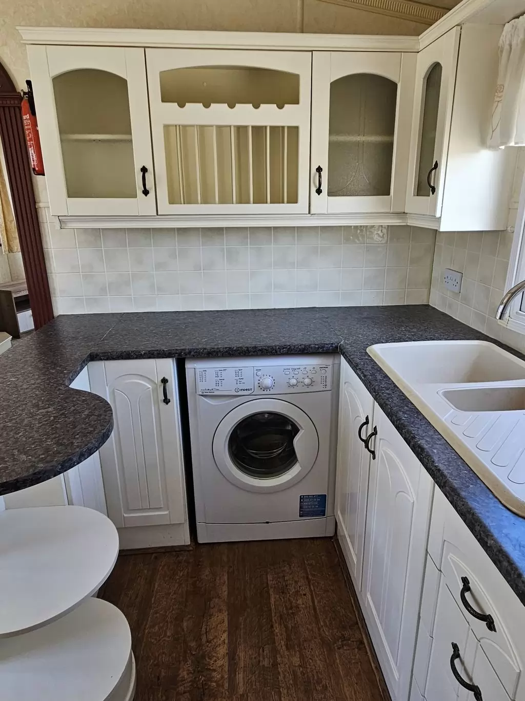 Extra široký, nádherný, čistý, kompletne vybavený mobilheim 12,5 x 3,7m s jedným vchodom s arkierom, SEDLOVOU STRECHOU S IMITÁCIOU STREŠNÝCH TAŠIEK, DVOJITÝMI (izolačnými) OKNAMI A DVERAMI - dithermy s IMITACIOU OKENIC, CENTRÁLNYM VYKUROVANÍM - plynový kotol + radiátory vo všetkých miestnostiach + elektrický krb v obývacej izbe. Priestranná obývacia izba, jedálenský kút, kuchyňa v tvare U vrátane spotrebičov, spálňa (dvojlôžko s úložným priestorom) + vlastný wc s umývadlom, izba (2 lôžka), kúpeľňa so sprchovacím kútom s pevnou zástenou, sedacou vaničkou a termostatickou batériou + wc. POZINKOVANÝ RÁM !! Zvýšený strop v celom mobilheime !!