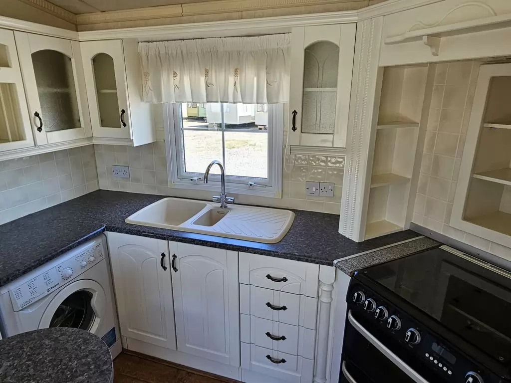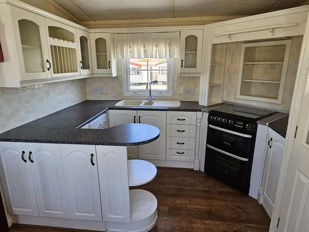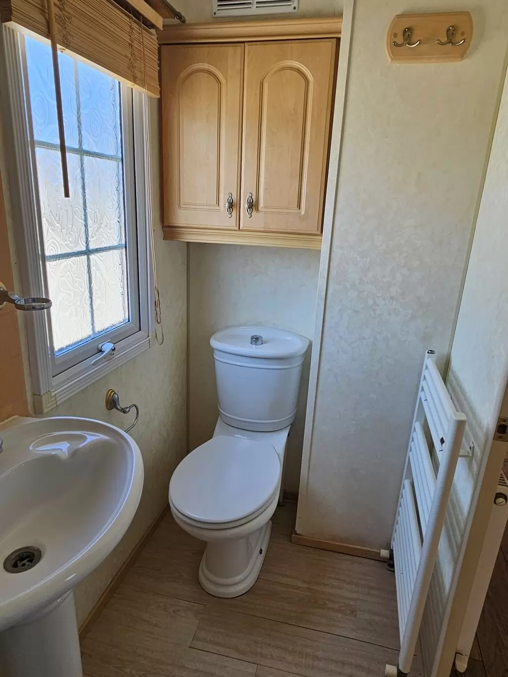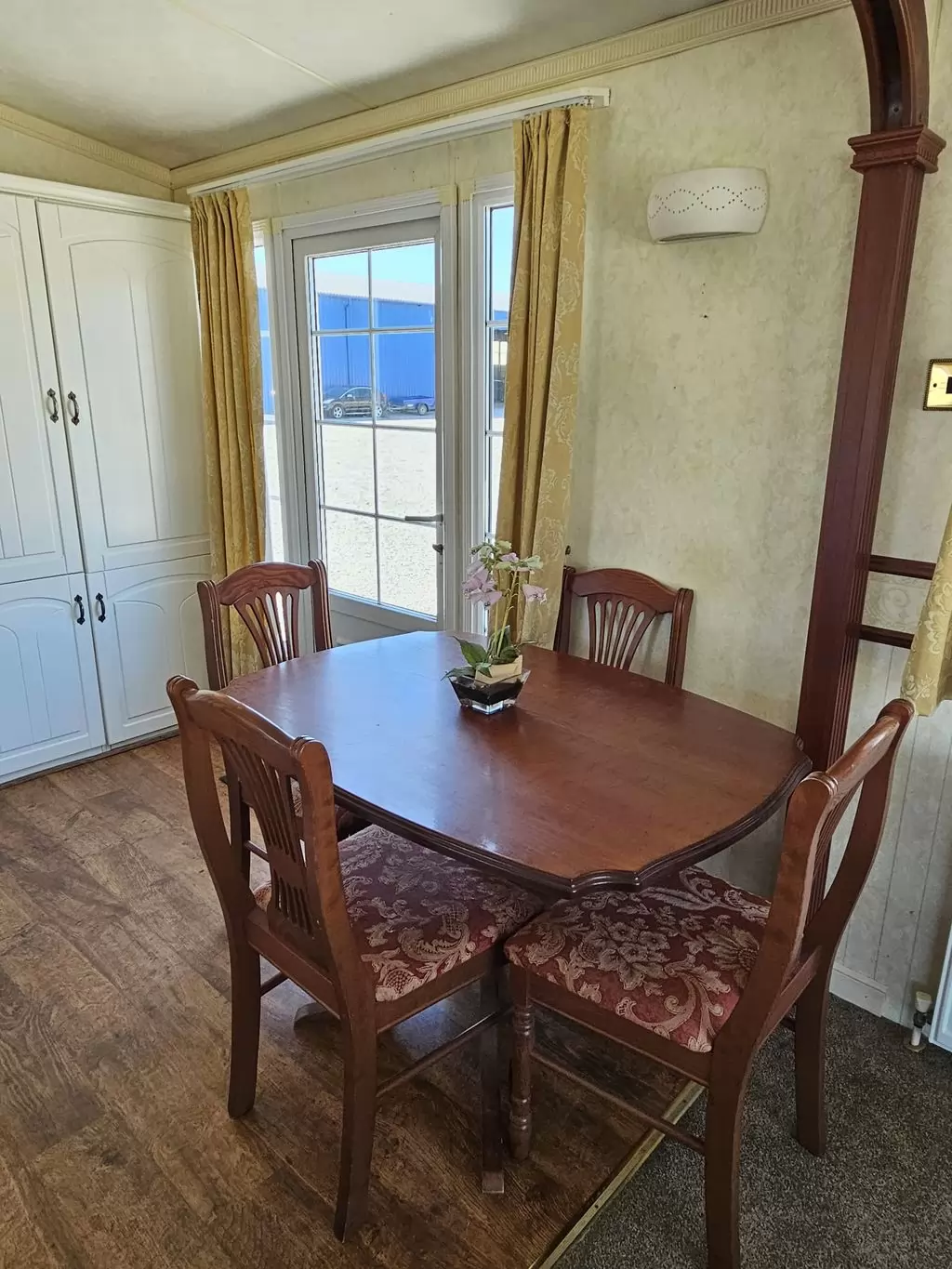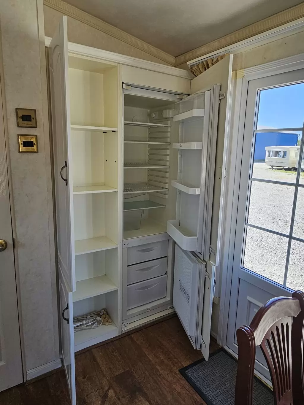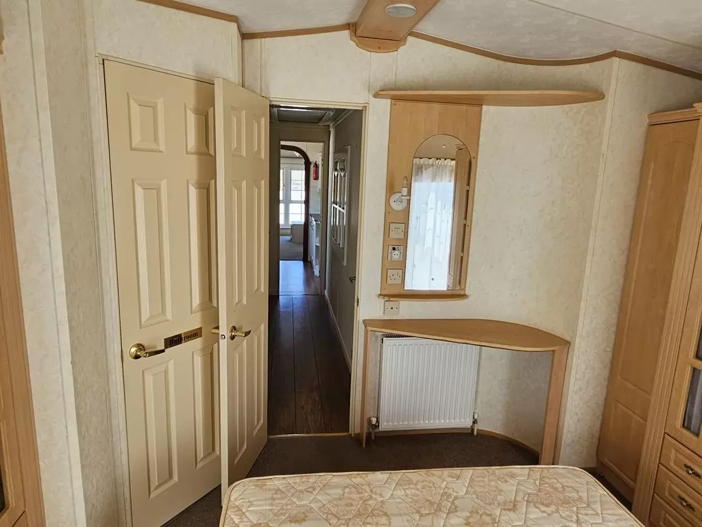 Extra široký, nádherný, čistý, kompletne vybavený mobilheim 12,5 x 3,7m s jedným vchodom s arkierom, SEDLOVOU STRECHOU S IMITÁCIOU STREŠNÝCH TAŠIEK, DVOJITÝMI (izolačnými) OKNAMI A DVERAMI - dithermy s IMITACIOU OKENIC, CENTRÁLNYM VYKUROVANÍM - plynový kotol + radiátory vo všetkých miestnostiach + elektrický krb v obývacej izbe. Priestranná obývacia izba, jedálenský kút, kuchyňa v tvare U vrátane spotrebičov, spálňa (dvojlôžko s úložným priestorom) + vlastný wc s umývadlom, izba (2 lôžka), kúpeľňa so sprchovacím kútom s pevnou zástenou, sedacou vaničkou a termostatickou batériou + wc. POZINKOVANÝ RÁM !! Zvýšený strop v celom mobilheime !!